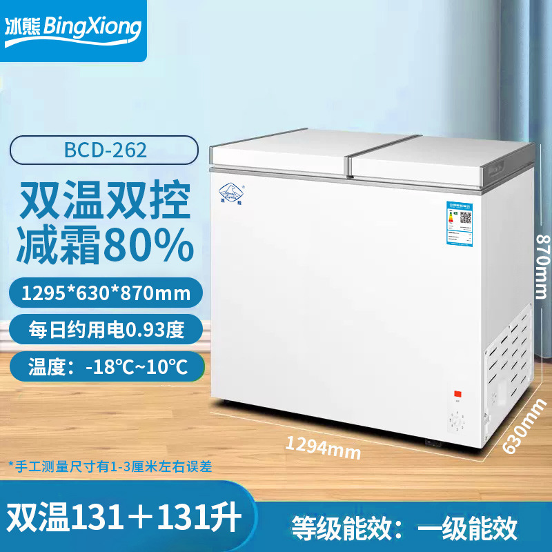 • 188L 이중 온도 이중 도어 냉동고 업그레이드된 두꺼워지고 성에가 줄어드는 모델 [고기 94kg 개 보관 가능] 포함