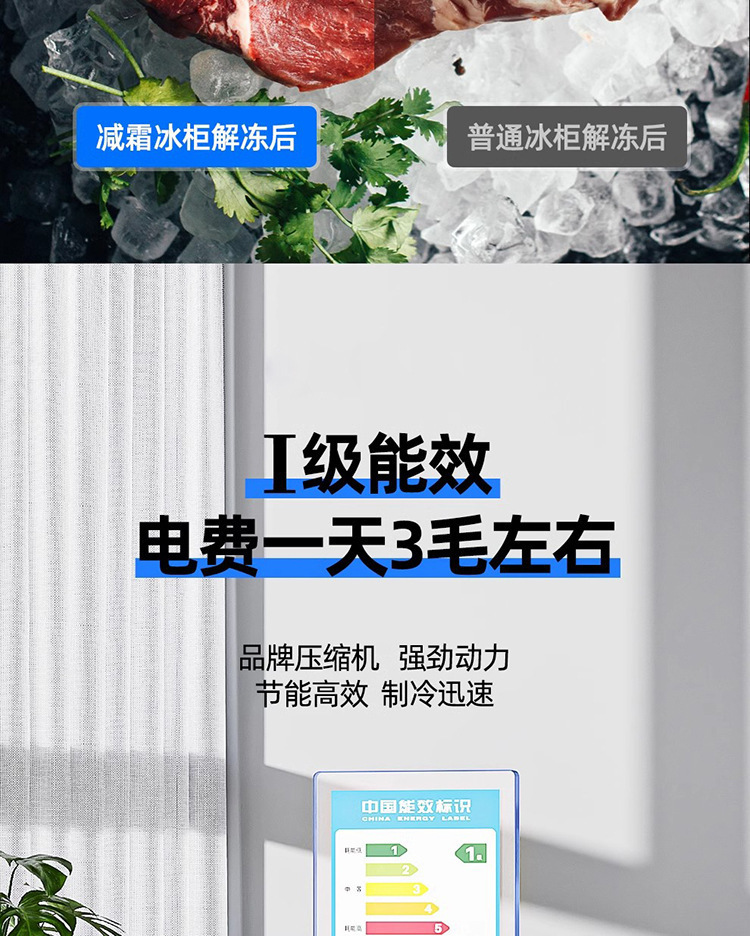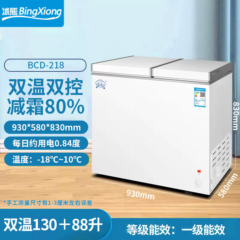 • 218L 이중 온도 이중 도어 냉동고 순수 구리 두꺼워진 성에 방지 모델 [고기 109kg 개 보관 가능] 포함