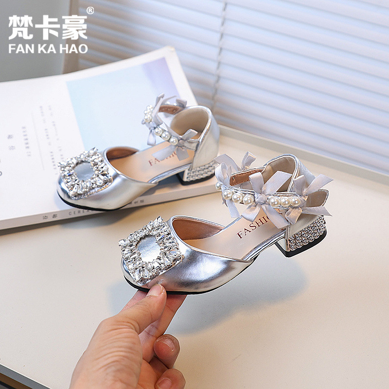 Fanca Hao 소녀 하이힐 공주 샌들 2025 여름 새로운 어린이 라인 석 작은 가죽 신발 학생 댄스 신발스토어 가기