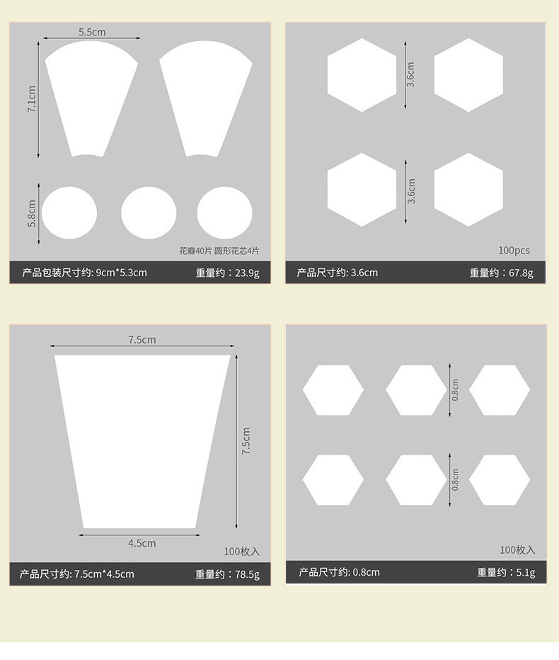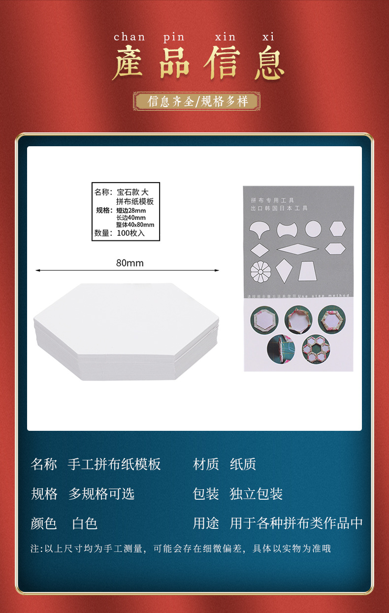 • 육각형 패치워크 종이 템플릿-40mm