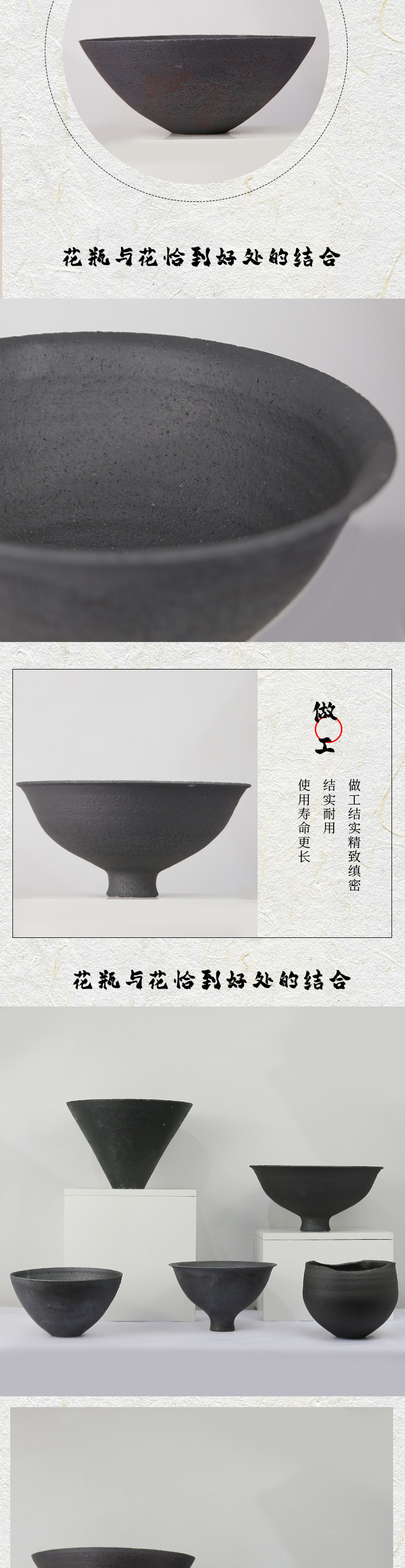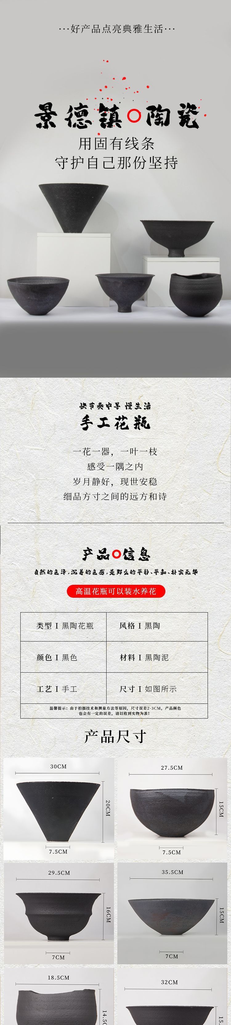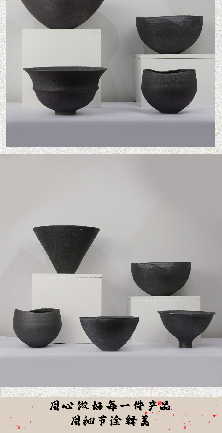 중국 복고풍 선명한 도자기 냄비 검은 세라믹 꽃병 장식품 거실 꽃꽂이 호텔 모델 룸 액세서리
