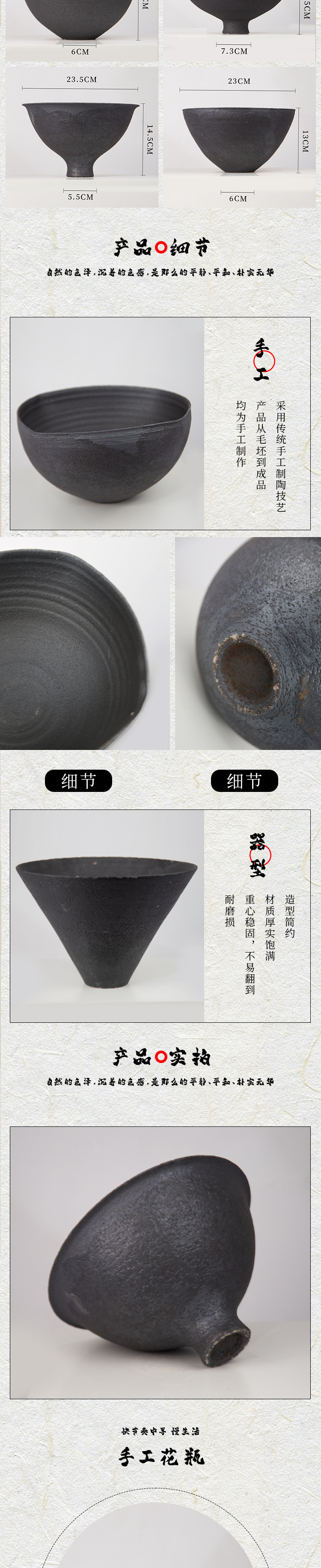 중국 복고풍 선명한 도자기 냄비 검은 세라믹 꽃병 장식품 거실 꽃꽂이 호텔 모델 룸 액세서리스토어 가기