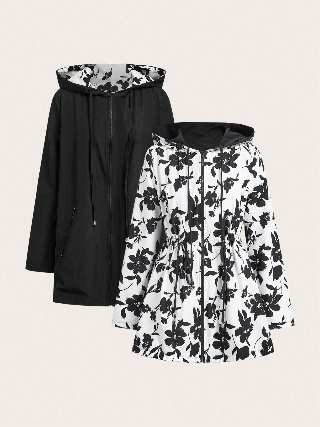 크로스보더 유럽 및 미국 여성 의류 양면 레오파드 프린트 후드 지퍼 재킷 캐주얼 롱 코트 벨트 긴 소매스토어 가기