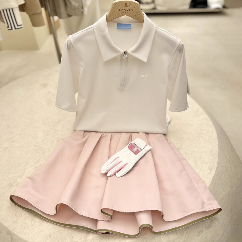 한국판 오리지널 골프 여성 골프 유니폼 패셔너블한 라펠 하프 지퍼 반팔 티셔츠 여름 가볍고 통기성이 좋은 상의