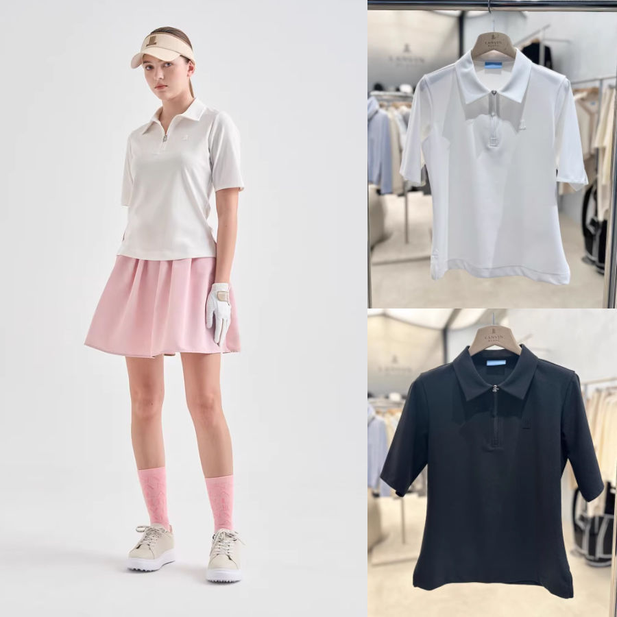 한국판 오리지널 골프 여성 골프 유니폼 패셔너블한 라펠 하프 지퍼 반팔 티셔츠 여름 가볍고 통기성이 좋은 상의스토어 가기