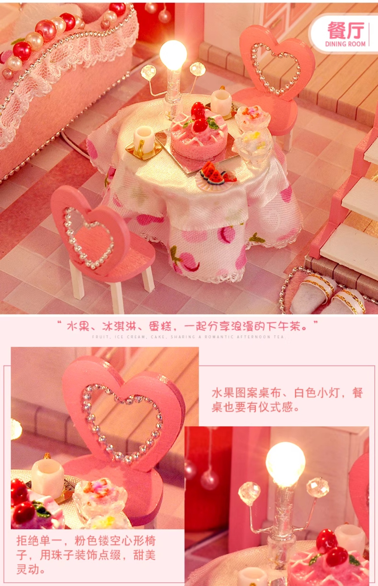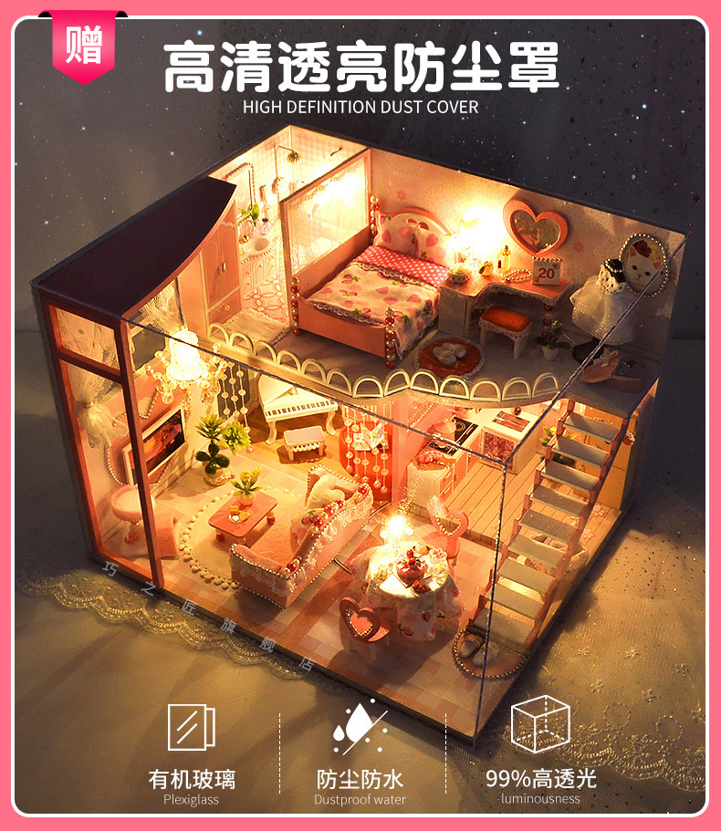 • ★ 선물 상자] Sweetheart Dream Loft + 먼지 커버 + 선물 상자 + 도구 접착제 + LED 조명