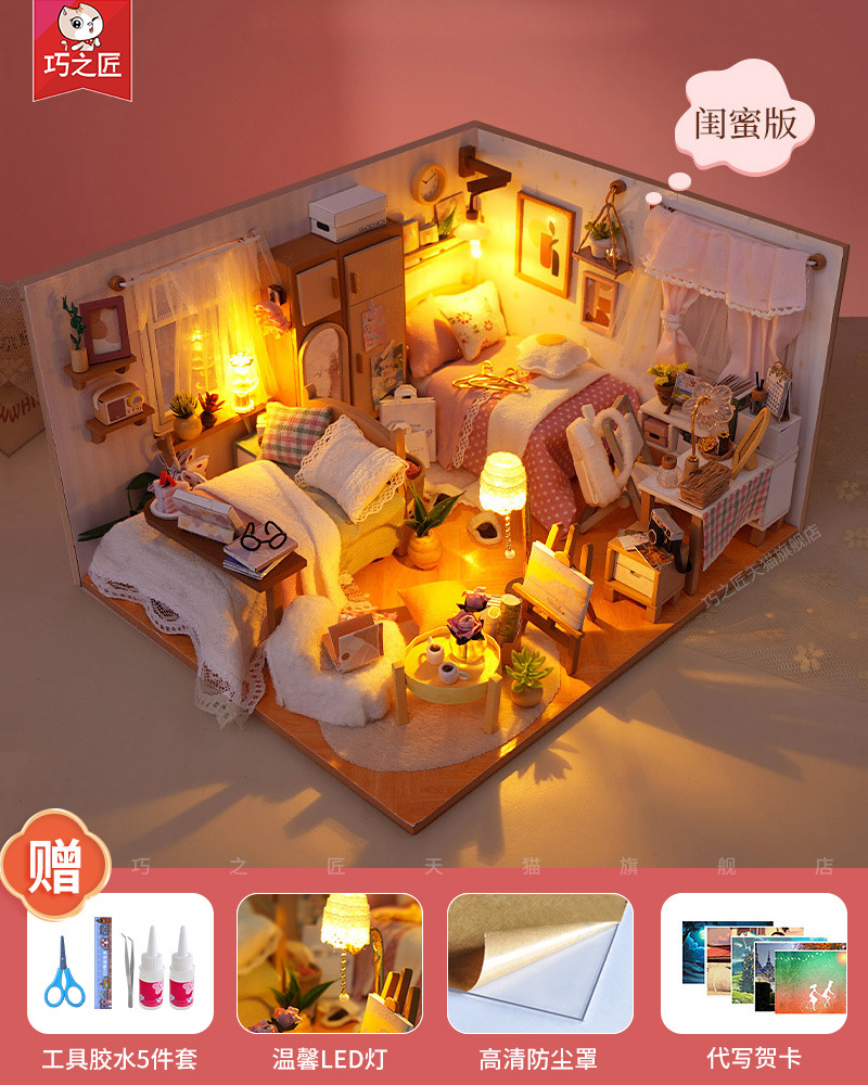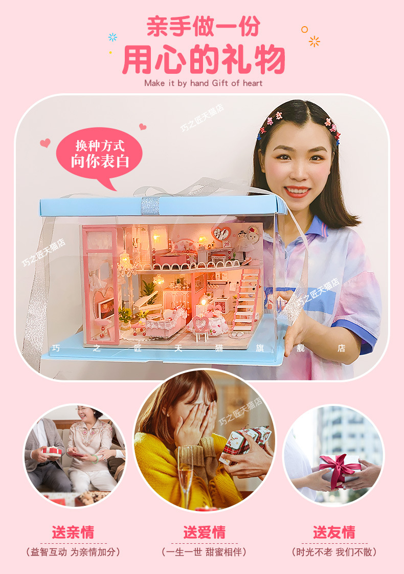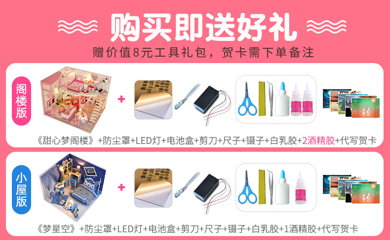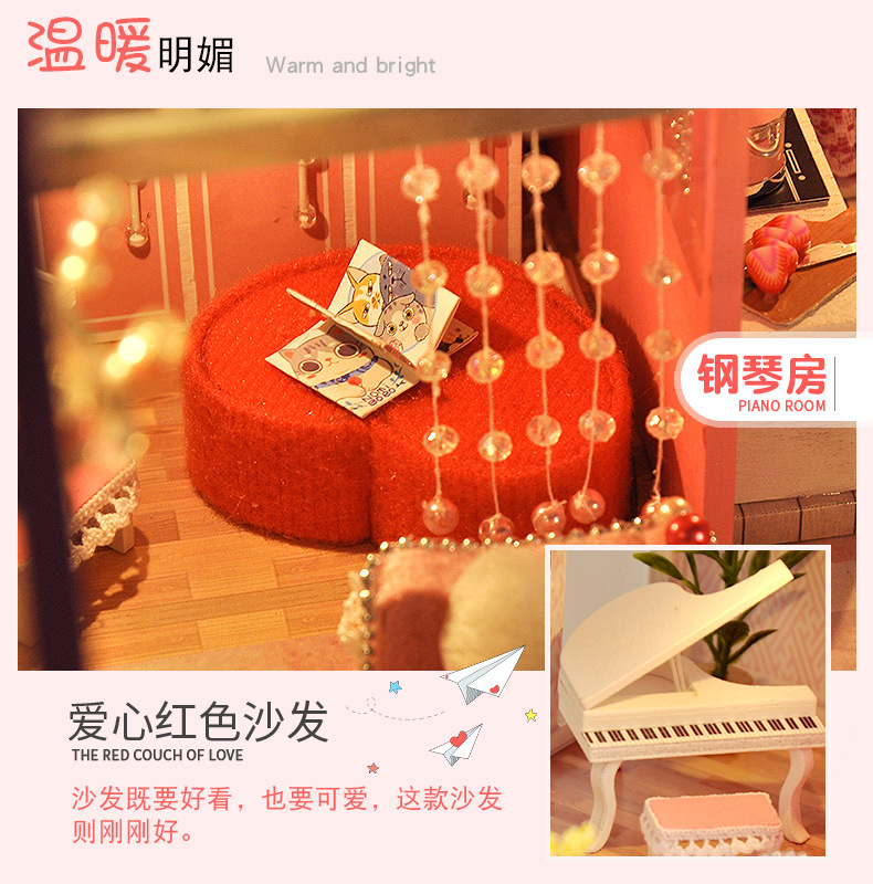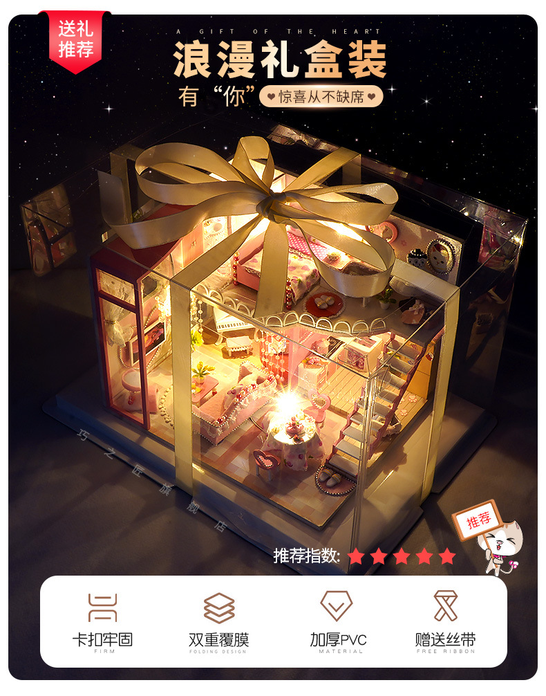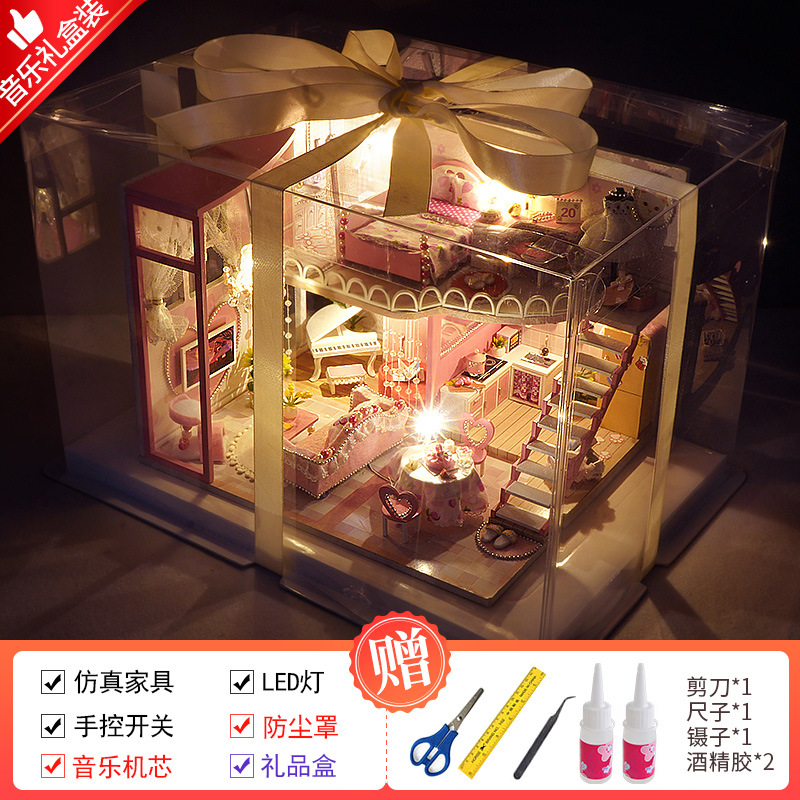 • ★ 음악 선물 상자] Sweetheart Dream Loft + 먼지 커버 + 음악 + 선물 상자 + 도구 접착제 + LED 조명