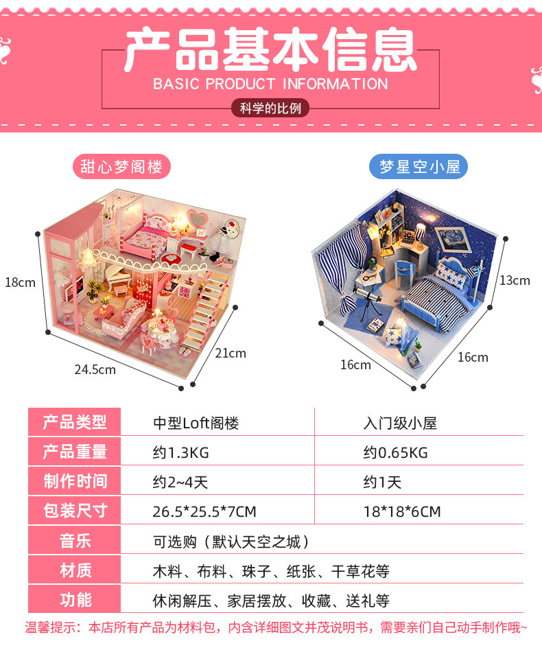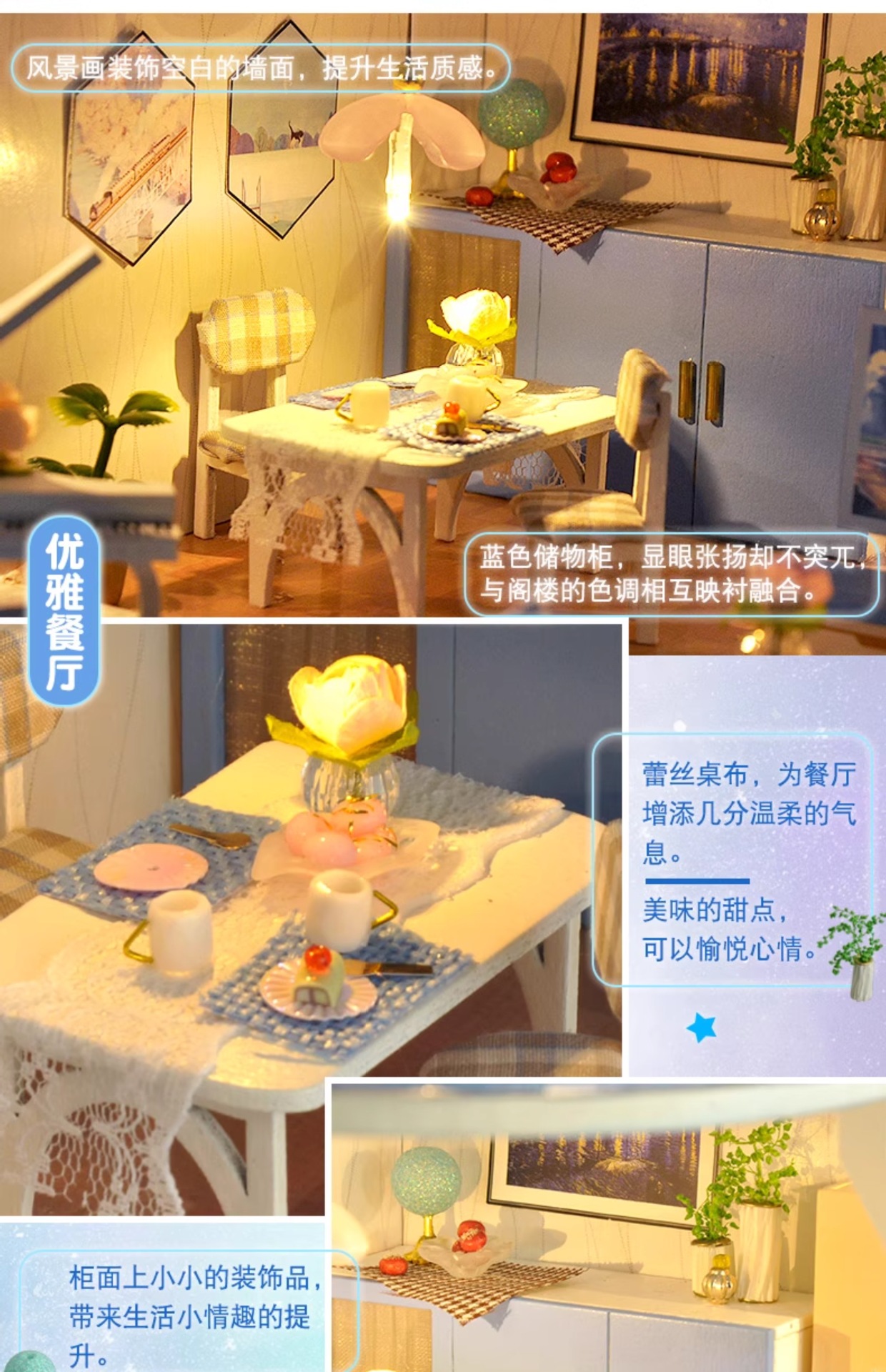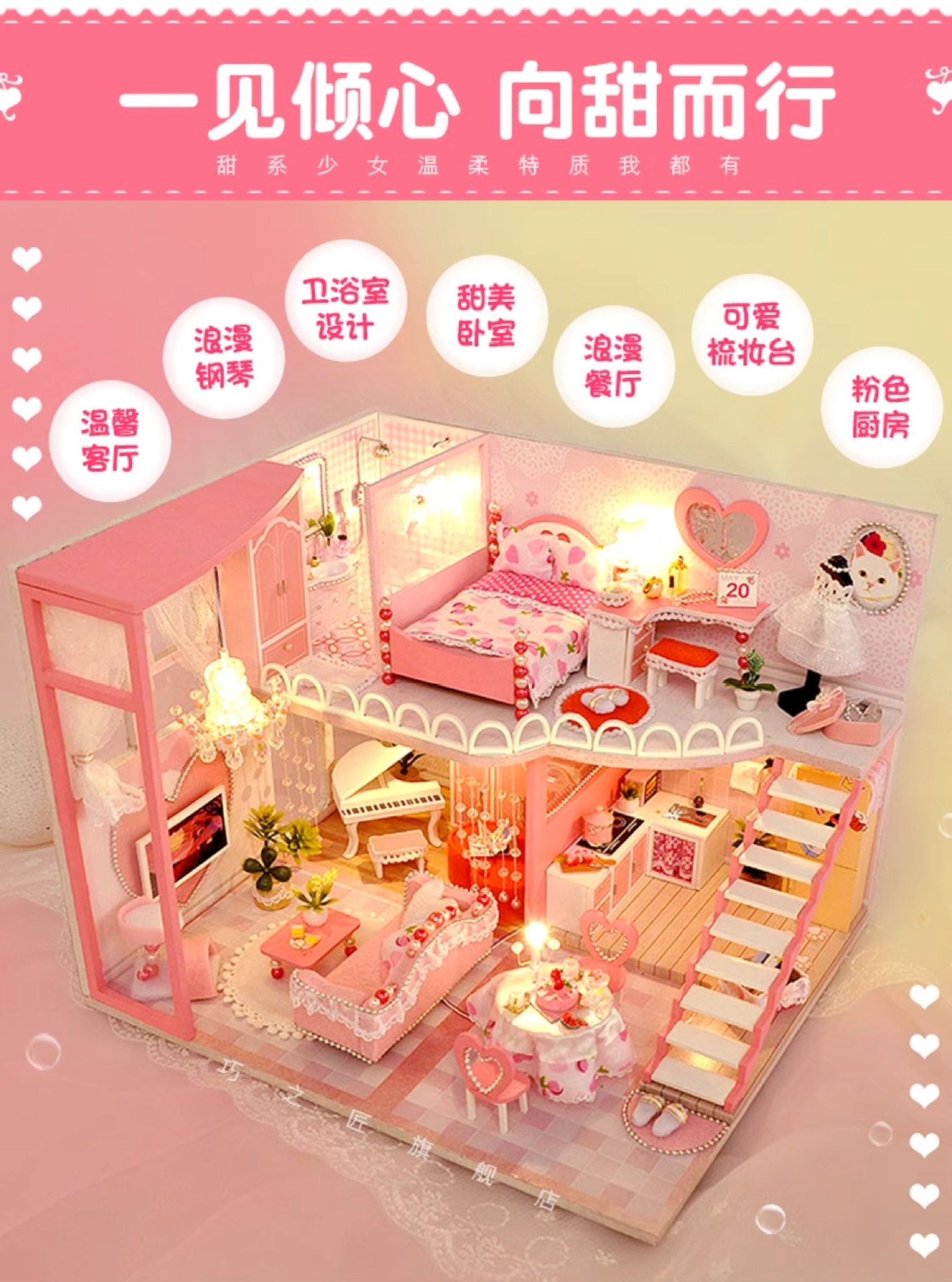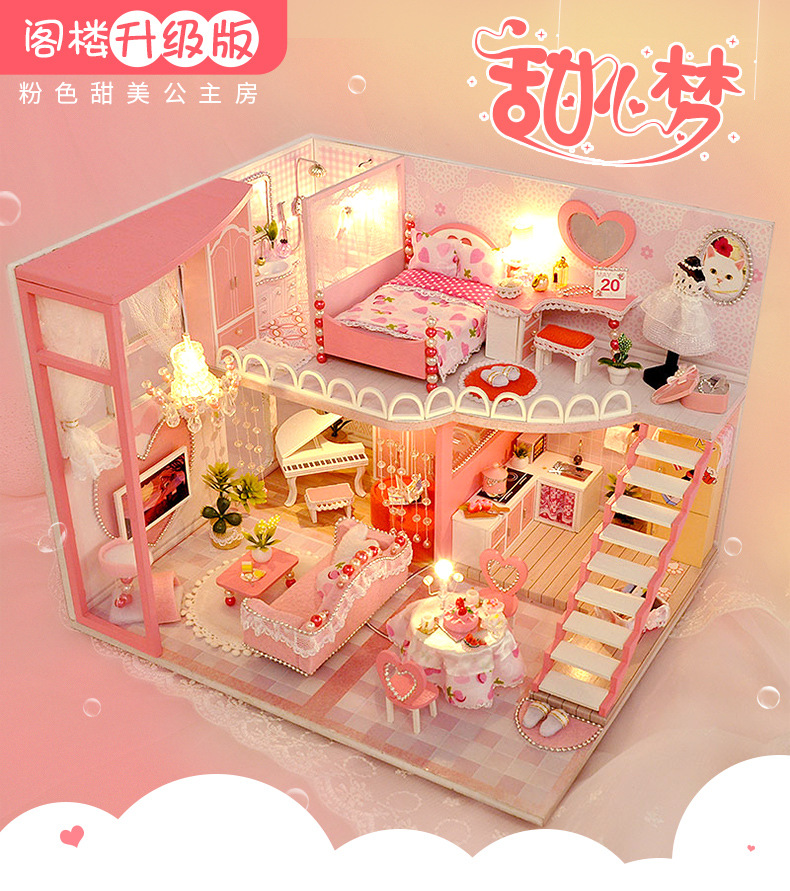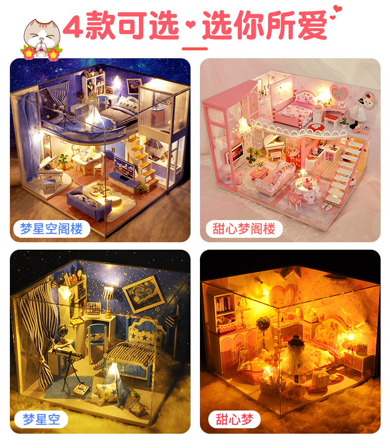 Qiaozhijiang diy 캐빈 로프트 빌라 손으로 조립한 공주 작은 집 미니어처 모델 장난감 생일 선물