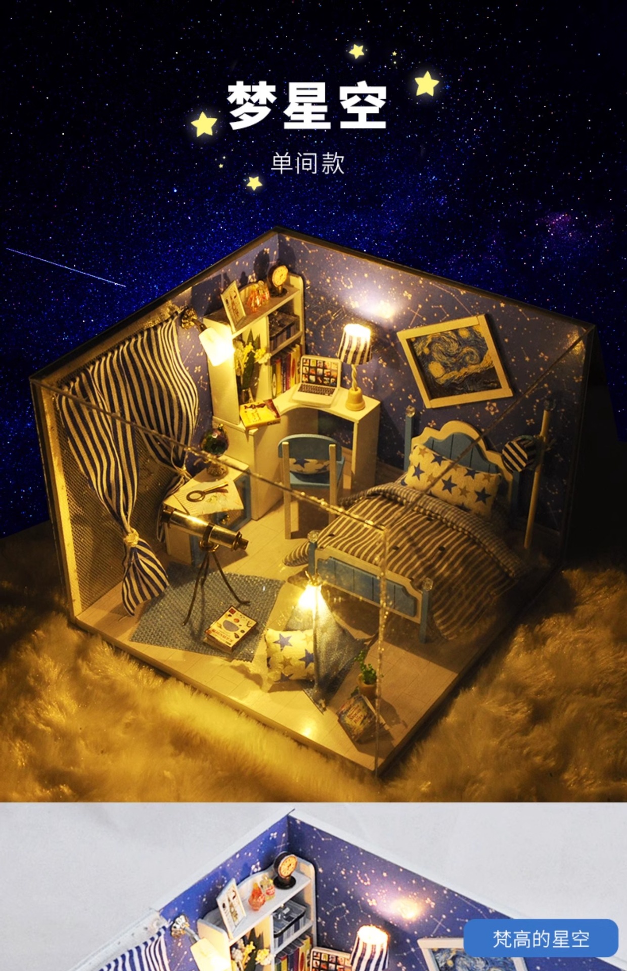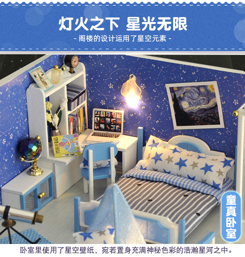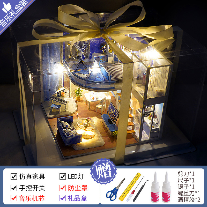 • ★ 뮤직 선물 상자] 드림 스타 로프트 + 먼지 커버 + 음악 + 선물 상자 + 도구 접착제 + LED 조명