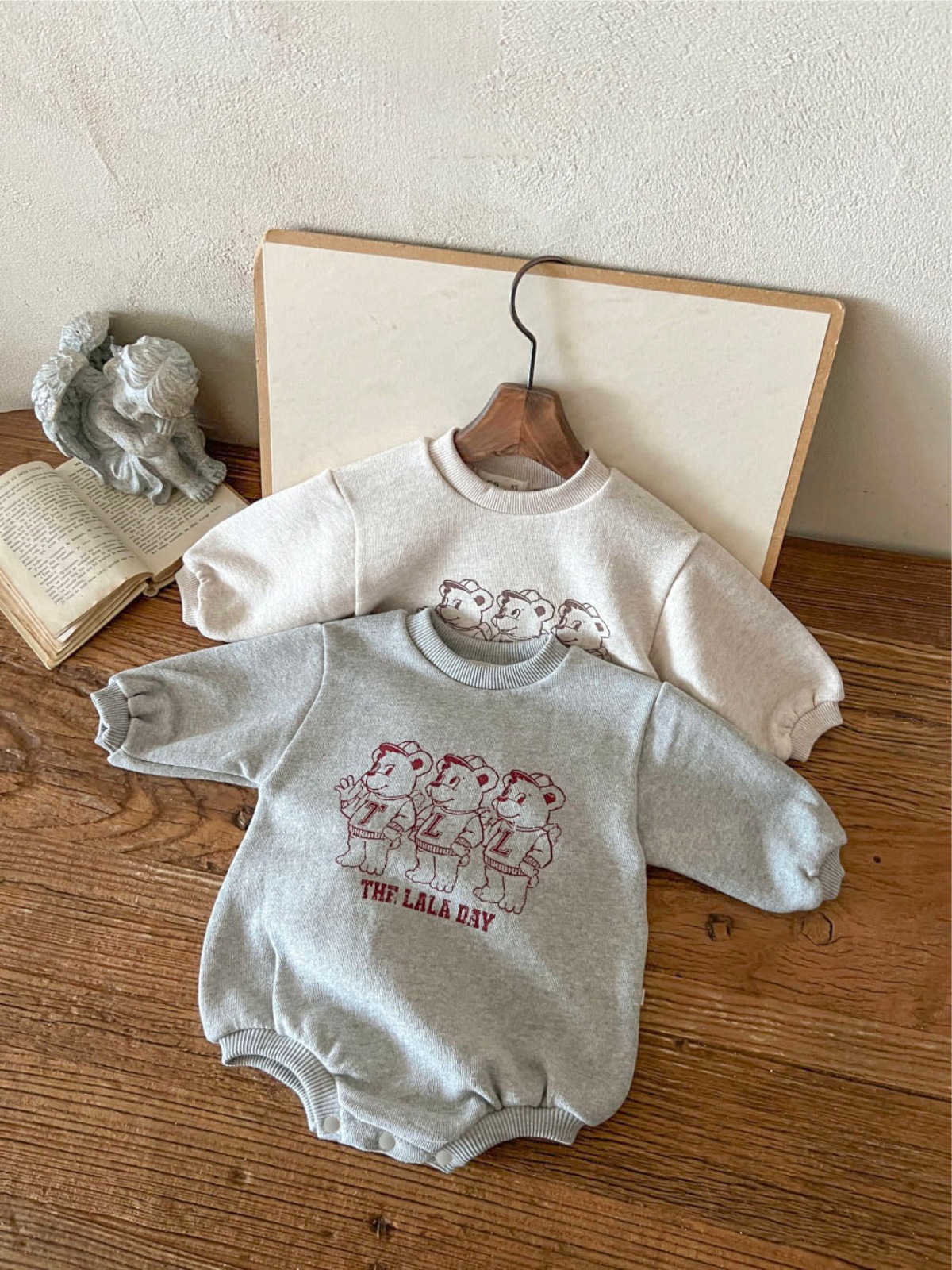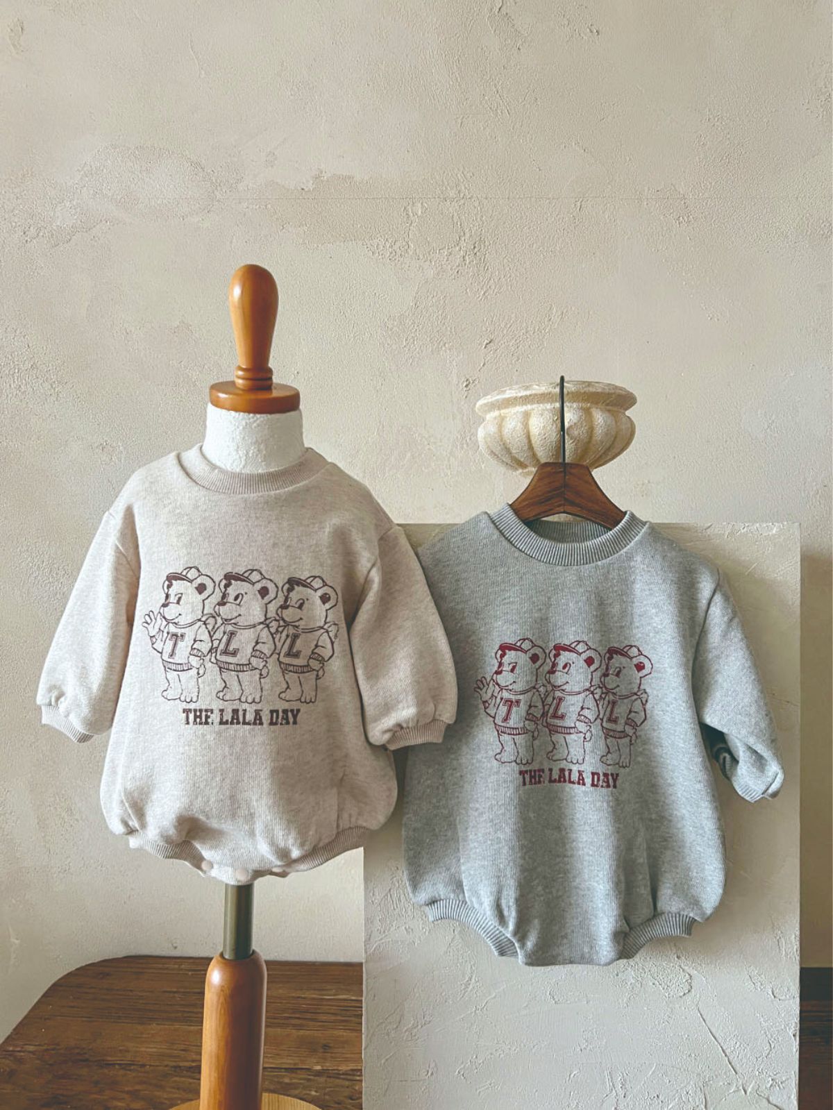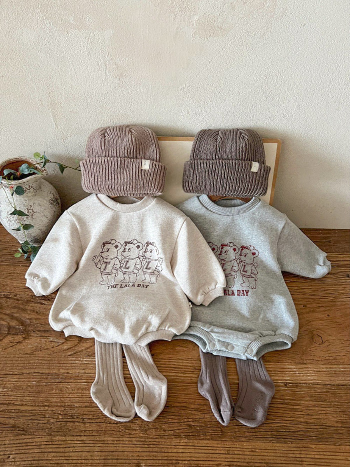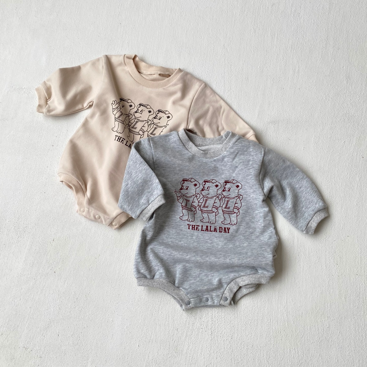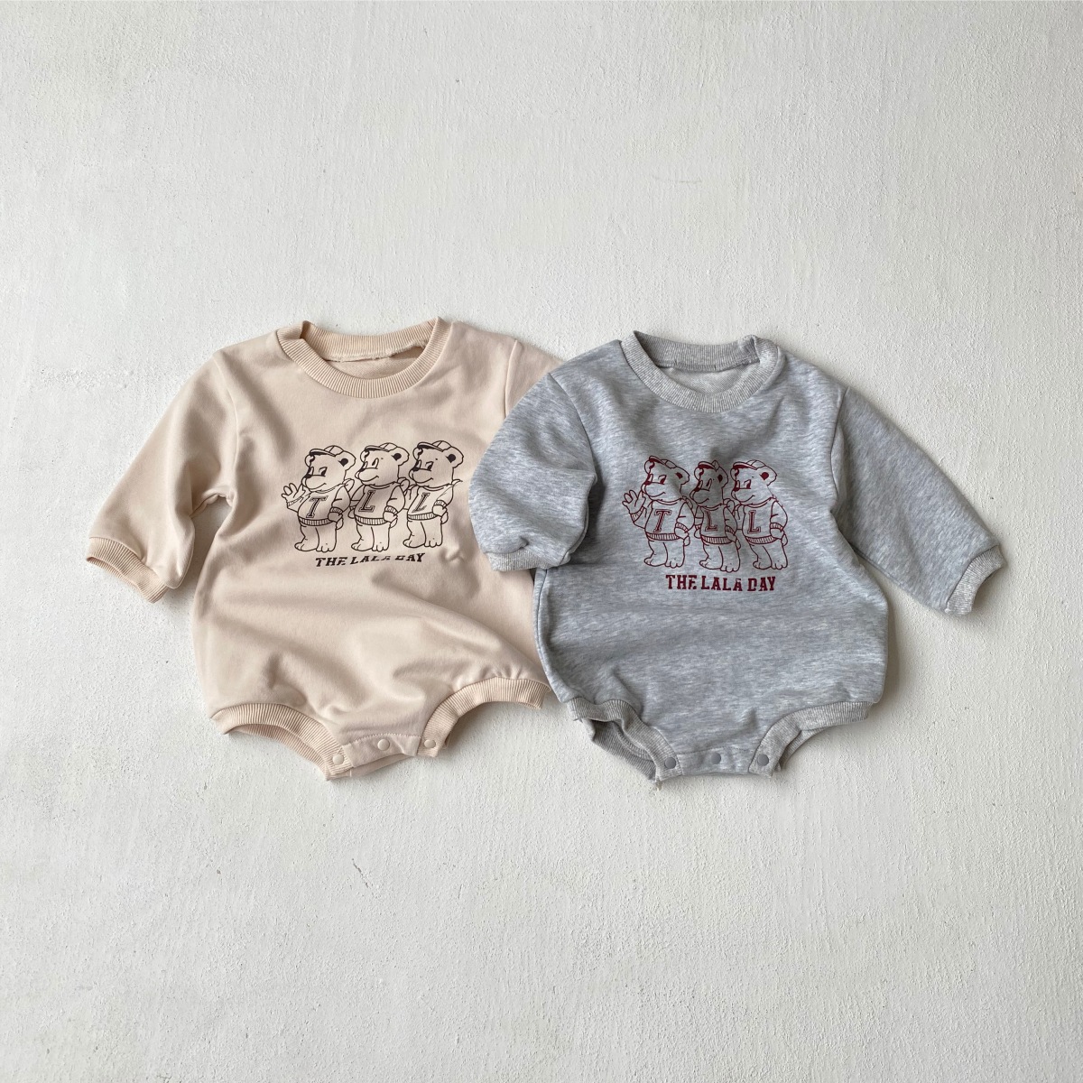 아기 옷, 가을 옷, 귀여운 만화 세 곰 프린트 아기 점프 슈트, 소년 소녀용 스웨트 셔츠, 크롤링 슈트스토어 가기