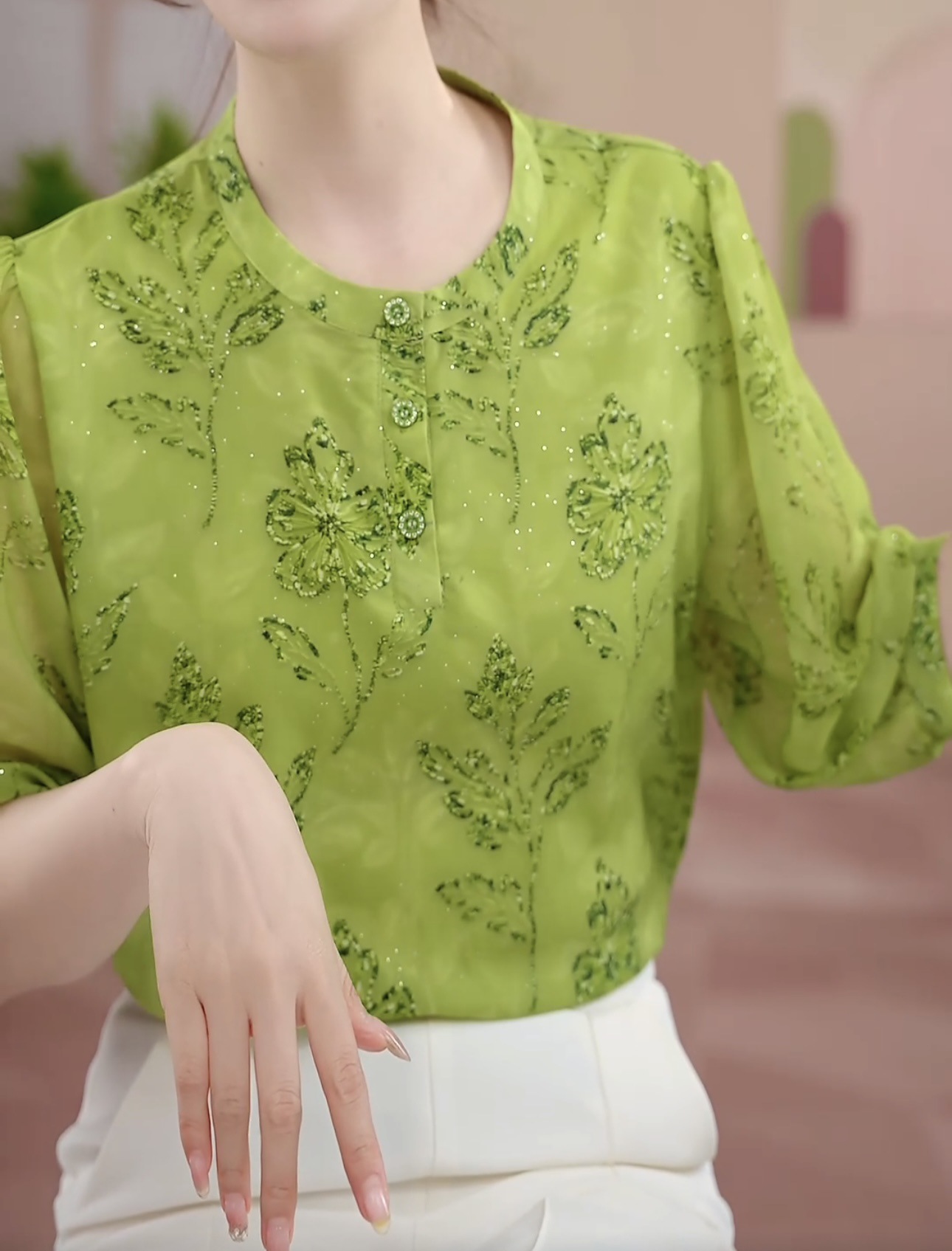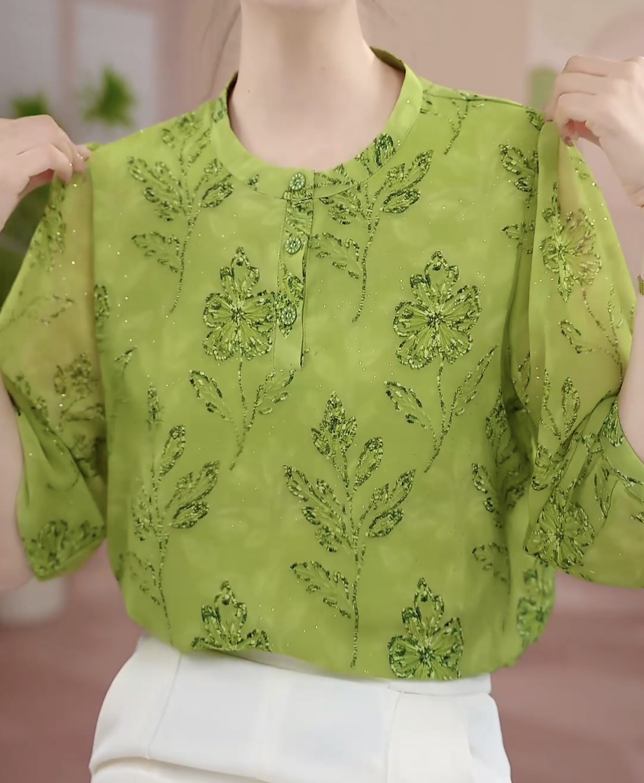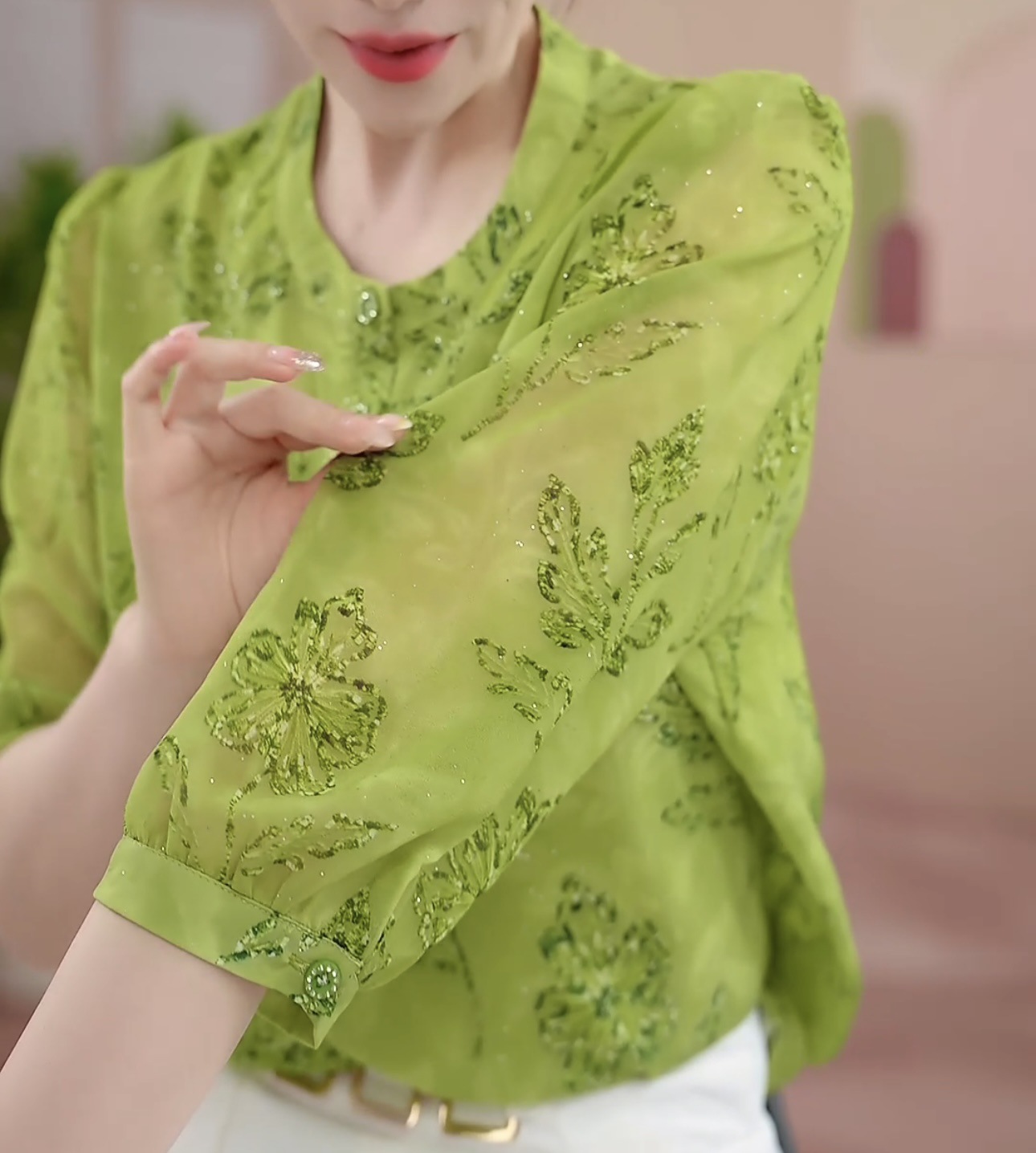 여성을 위한 가벼운 고급 쉬폰 셔츠 2025 새로운 여름 고급 중년 어머니의 나이를 줄여주는 스타일리시한 셔츠 슬리밍 탑스토어 가기