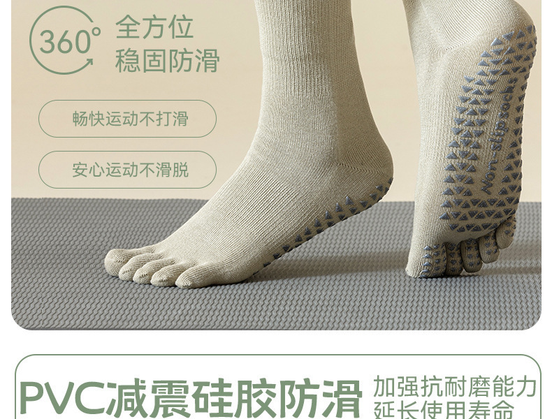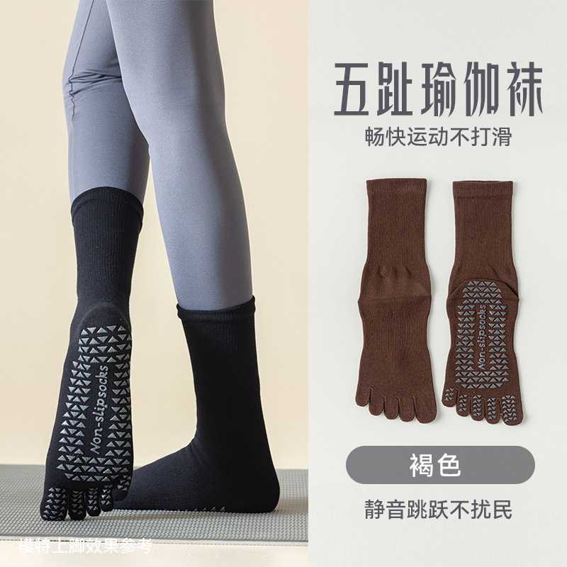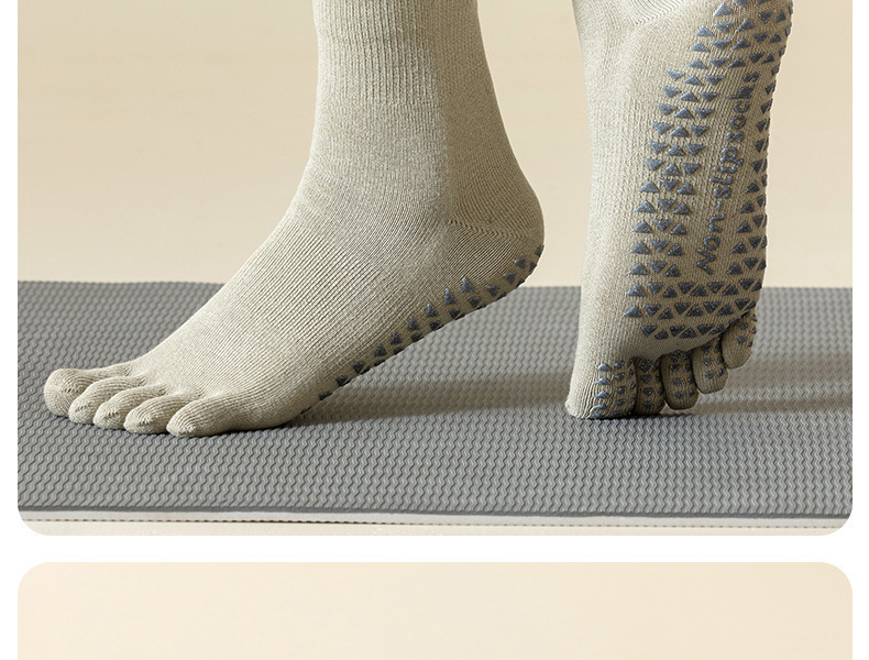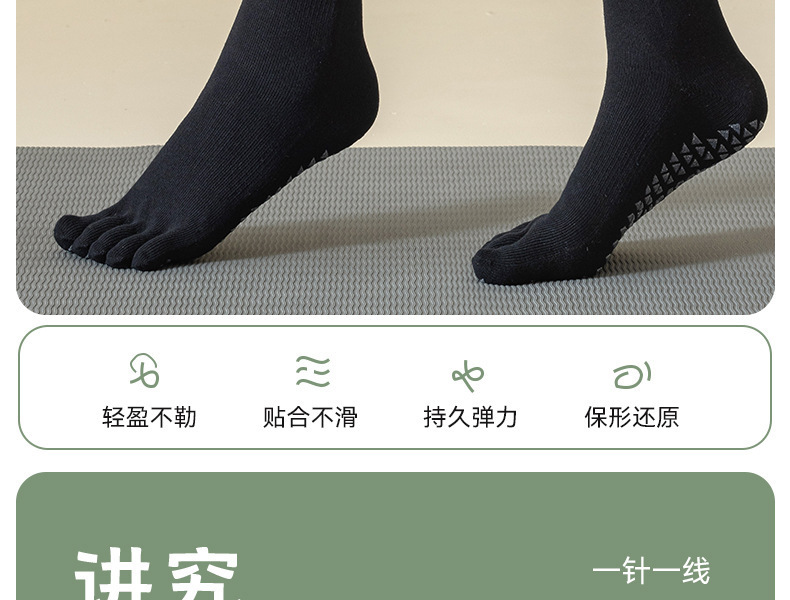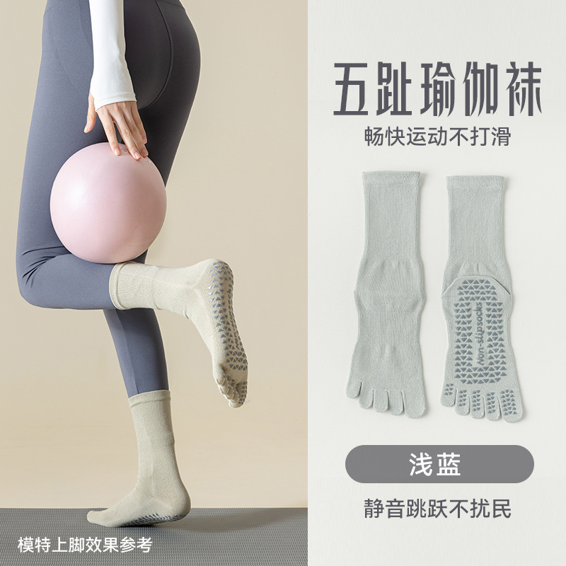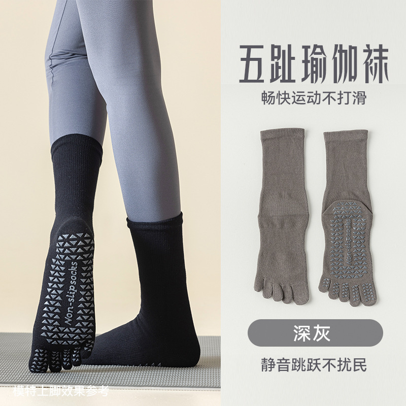 단색 요가 양말 전문 미끄럼 방지 스포츠 다섯 손가락 양말 중간 길이 플로어 필라테스 가을 겨울 분리형 발가락 중간 길이 양말스토어 가기