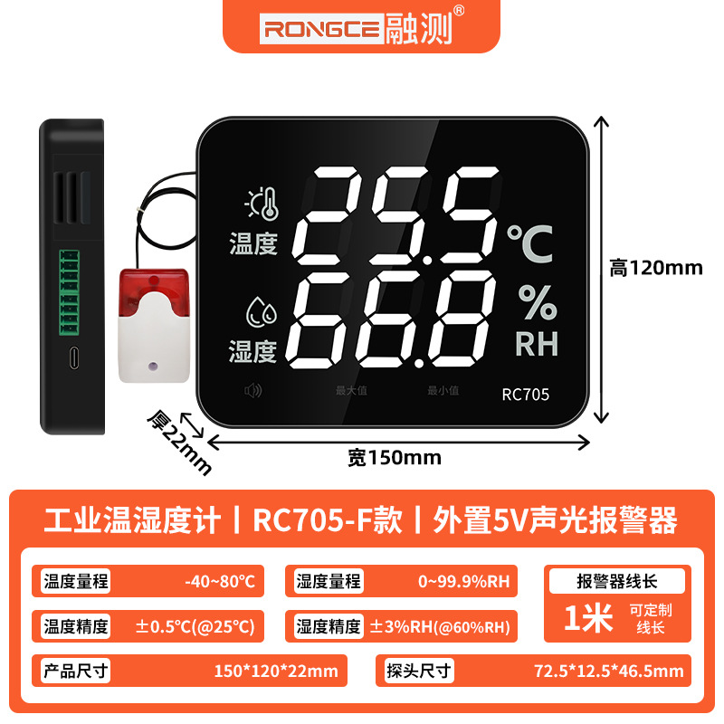• RC705-F 외부 소리 및 빛 경보 *터미널 485 프로토콜 포함 *정확한 측정 *조정 가능한 밝기