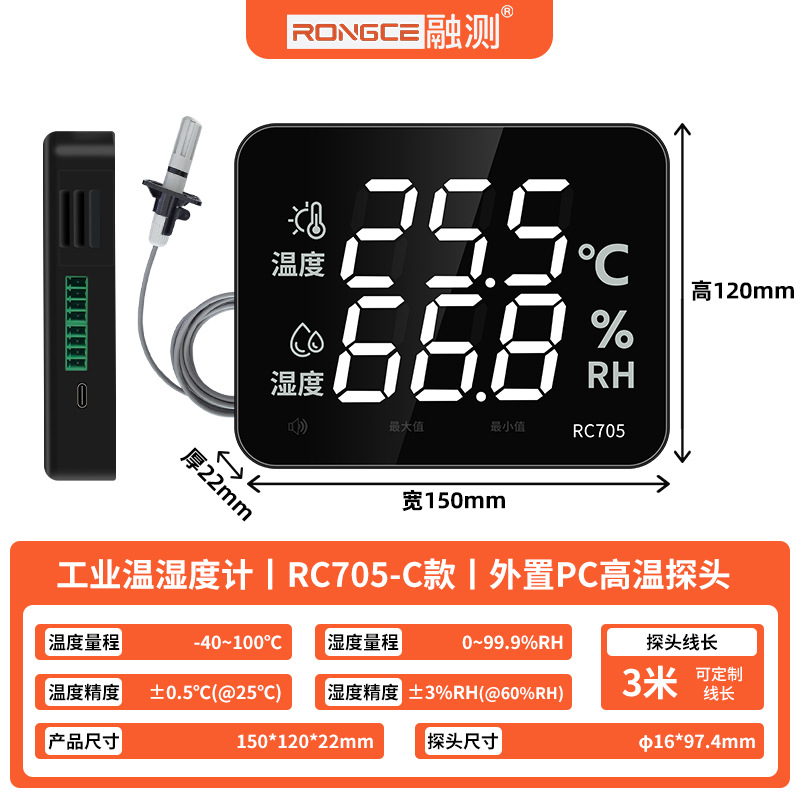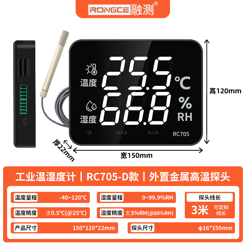 • RC705-D 외부 금속 고온 프로브 *터미널 485 프로토콜 포함 *정확한 측정 *조정 가능한 밝기