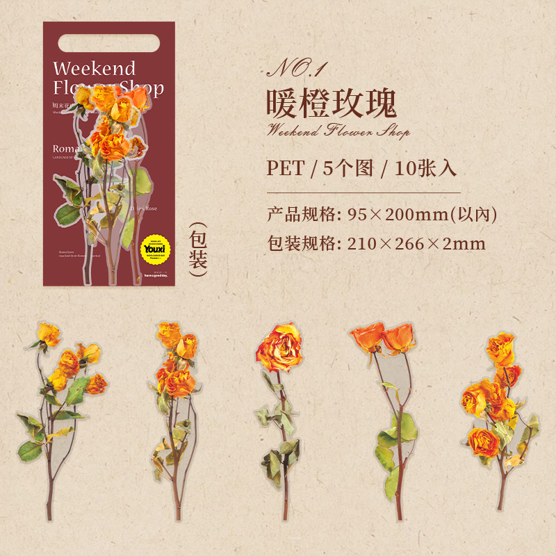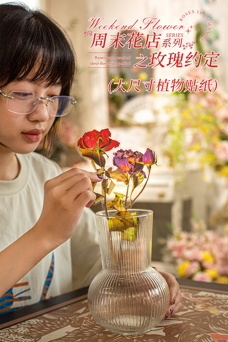 좋은 날 스티커 주말 꽃집 장미 약속 시리즈 복고풍 국경 간 꽃 표본 핸드북 콜라주스토어 가기