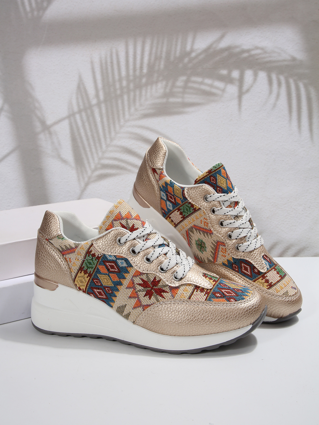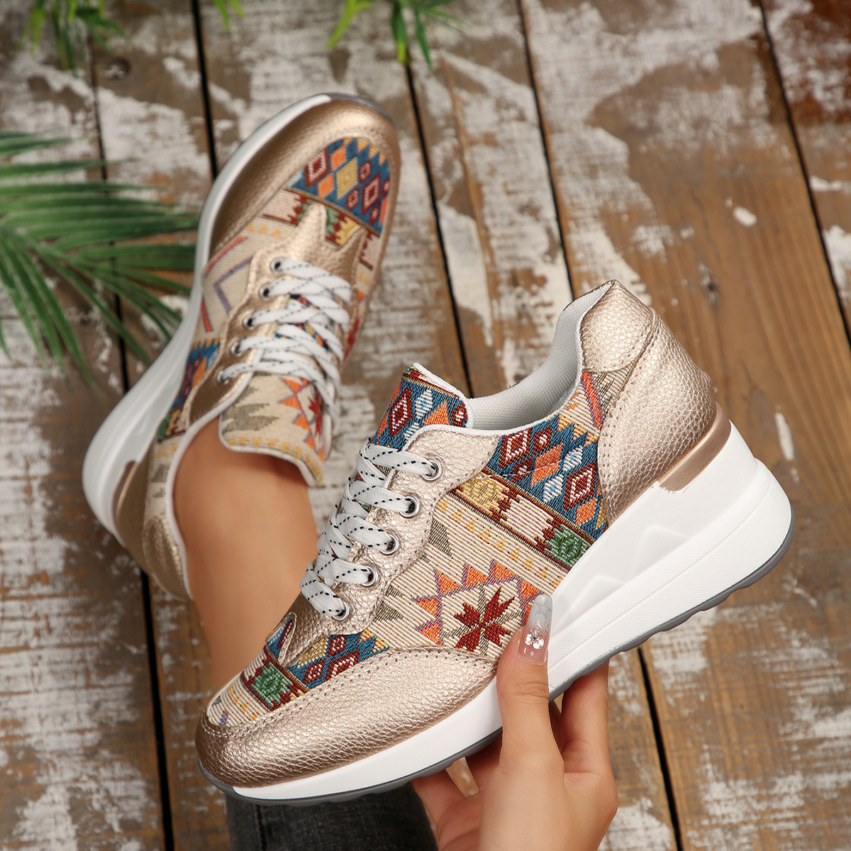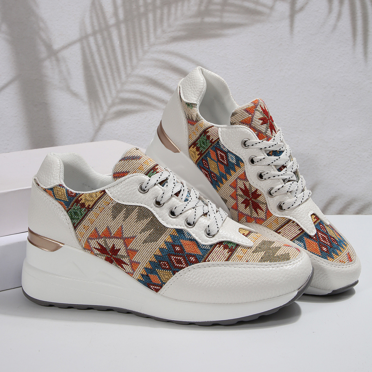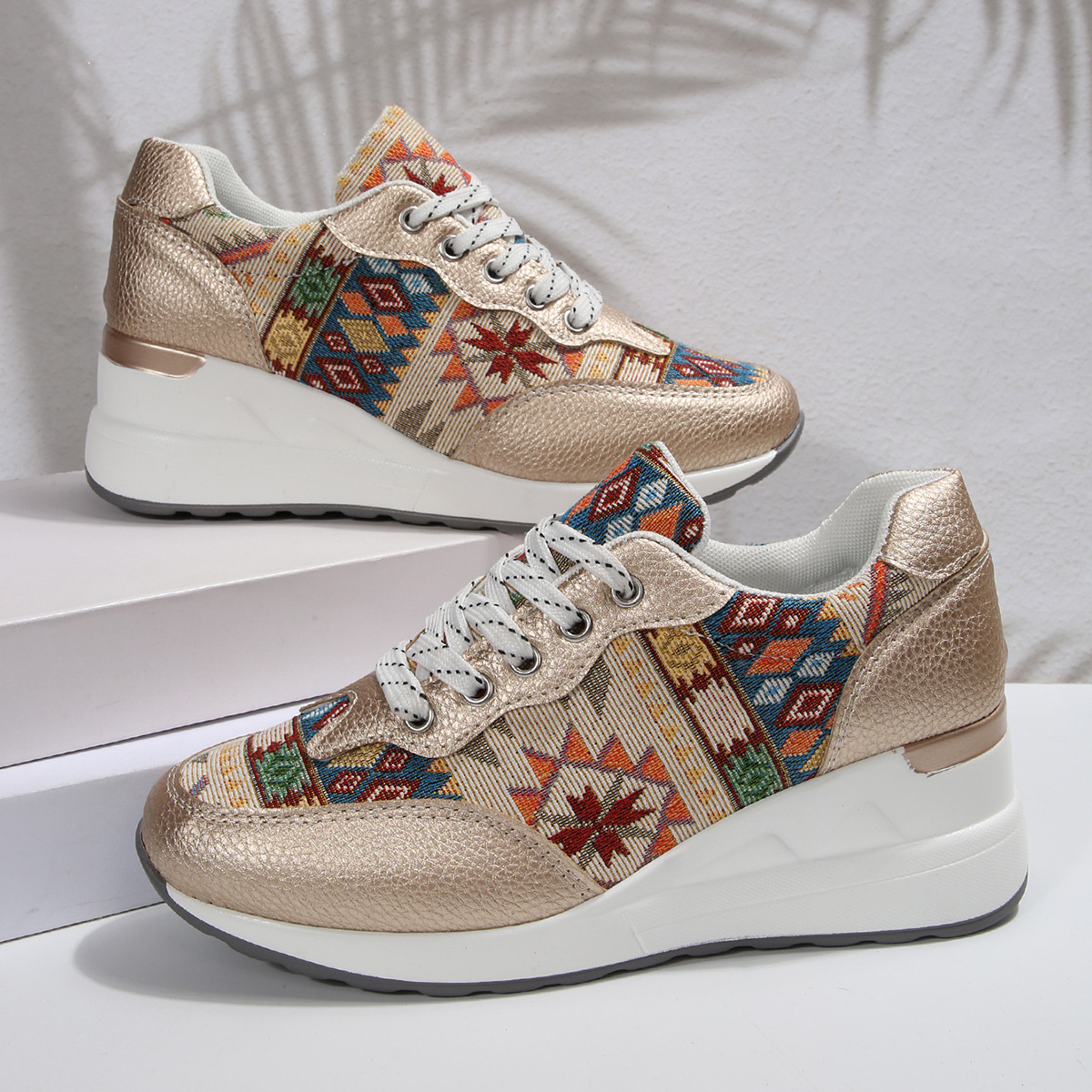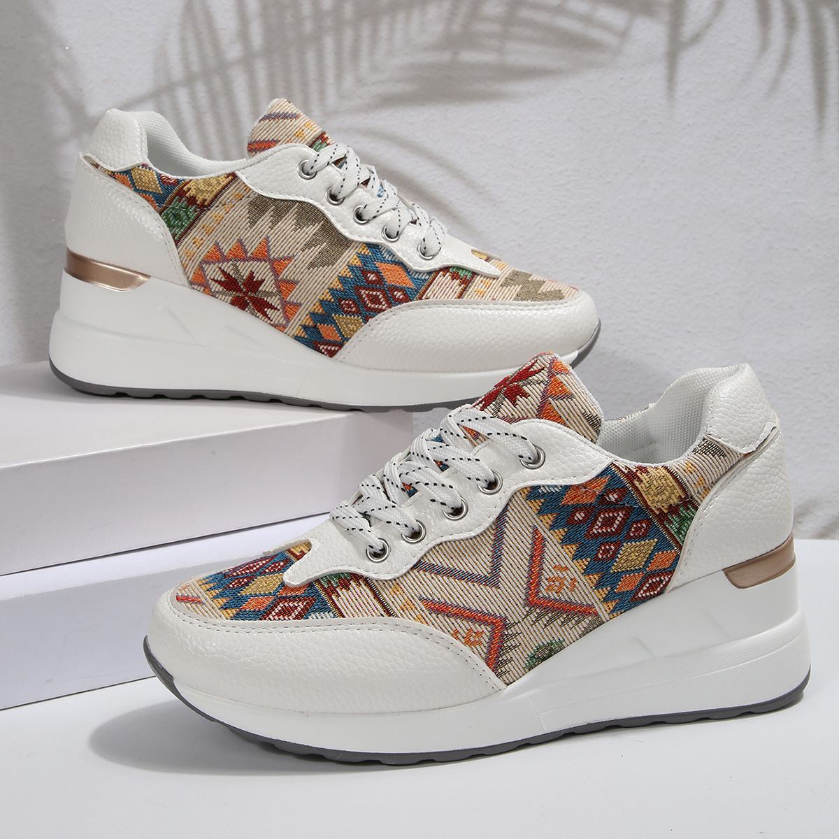 2025 새로운 가을 대외 무역 캐주얼 스포츠 신발 여성 웨지 에스닉 스타일 컬러 매칭 천 포레스트 검프 아빠 유행 신발 43스토어 가기