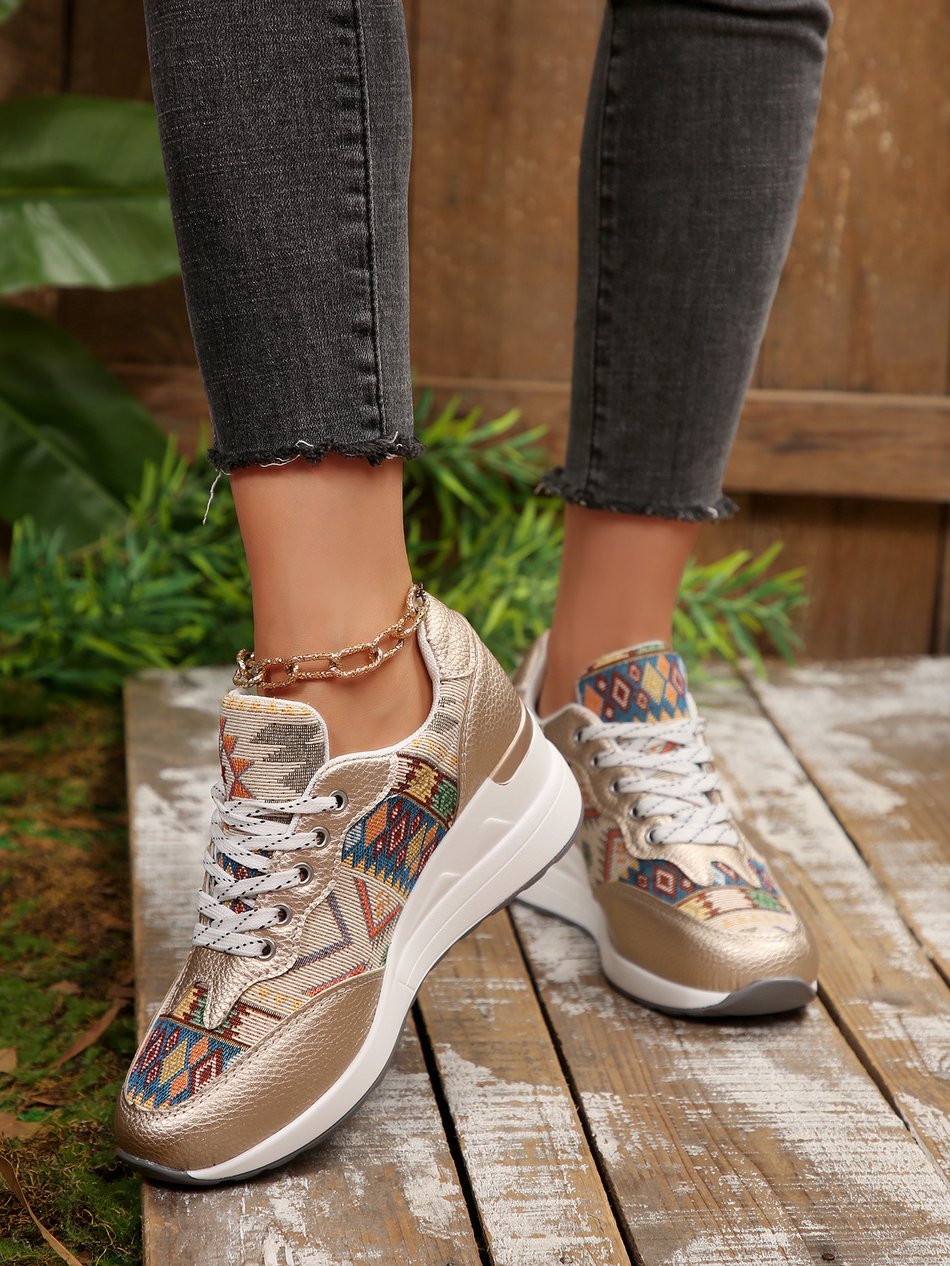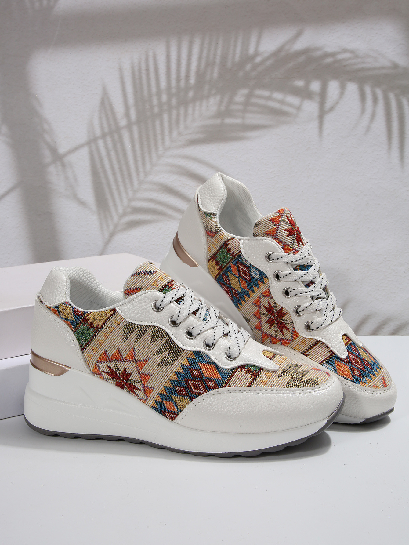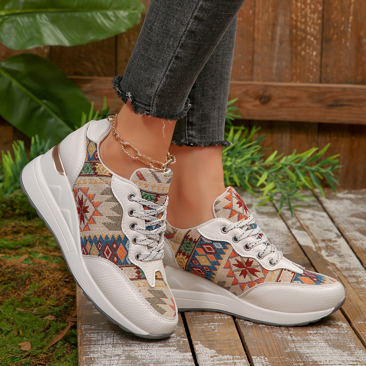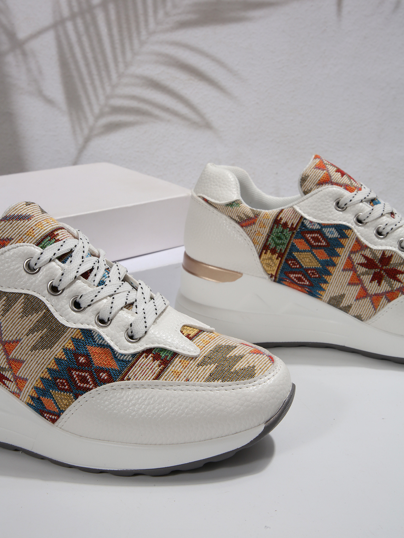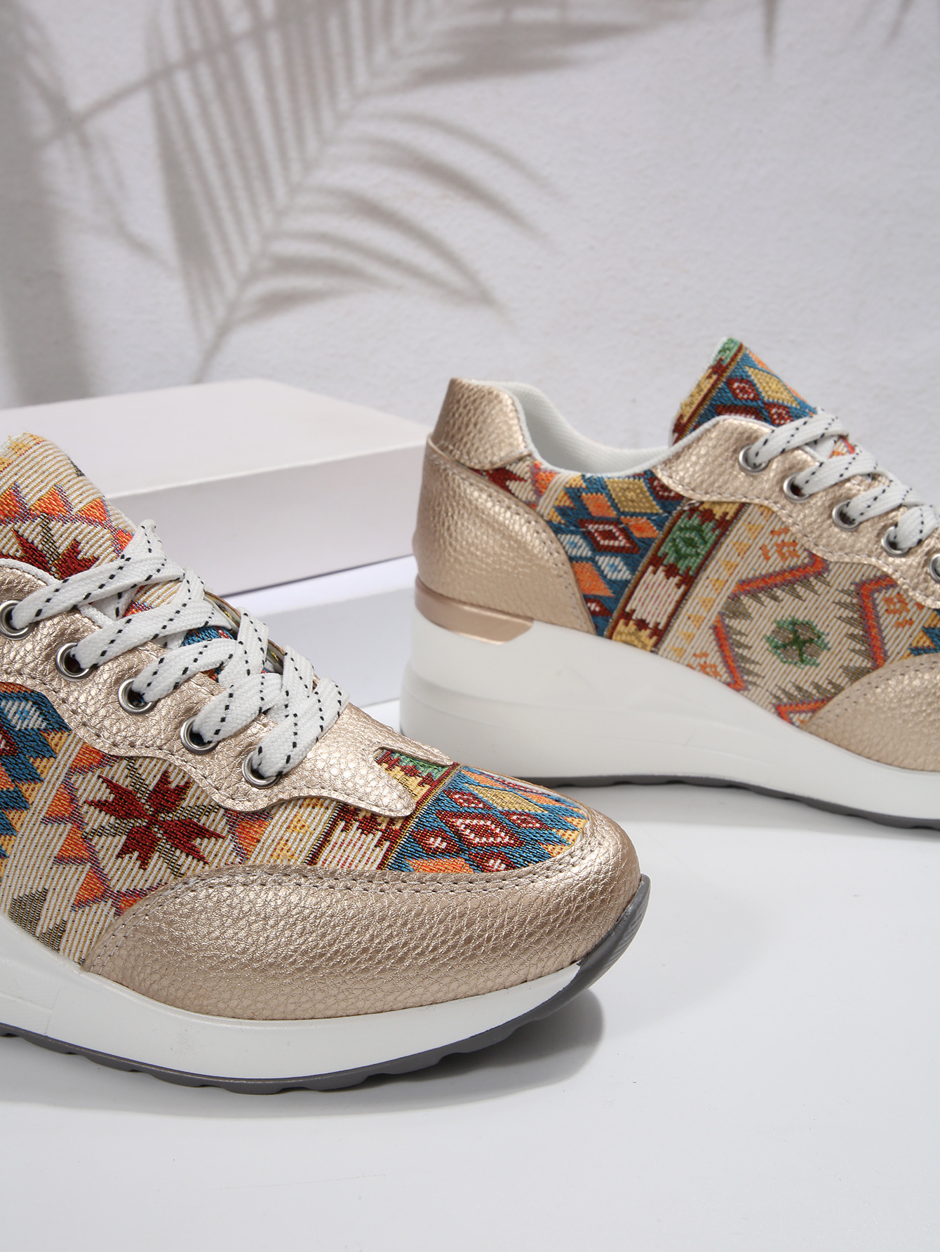 2025 새로운 가을 대외 무역 캐주얼 스포츠 신발 여성 웨지 에스닉 스타일 컬러 매칭 천 포레스트 검프 아빠 유행 신발 43스토어 가기