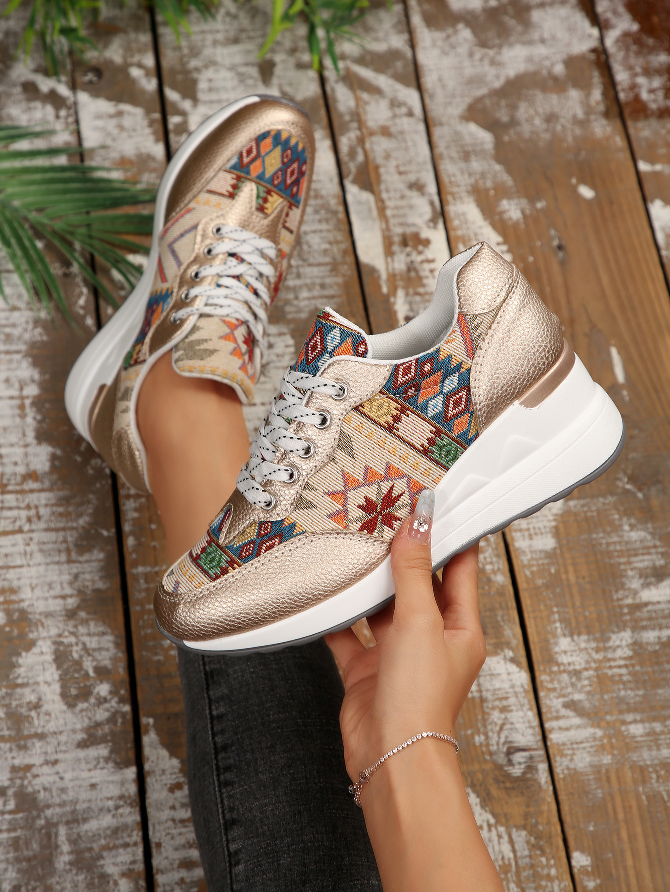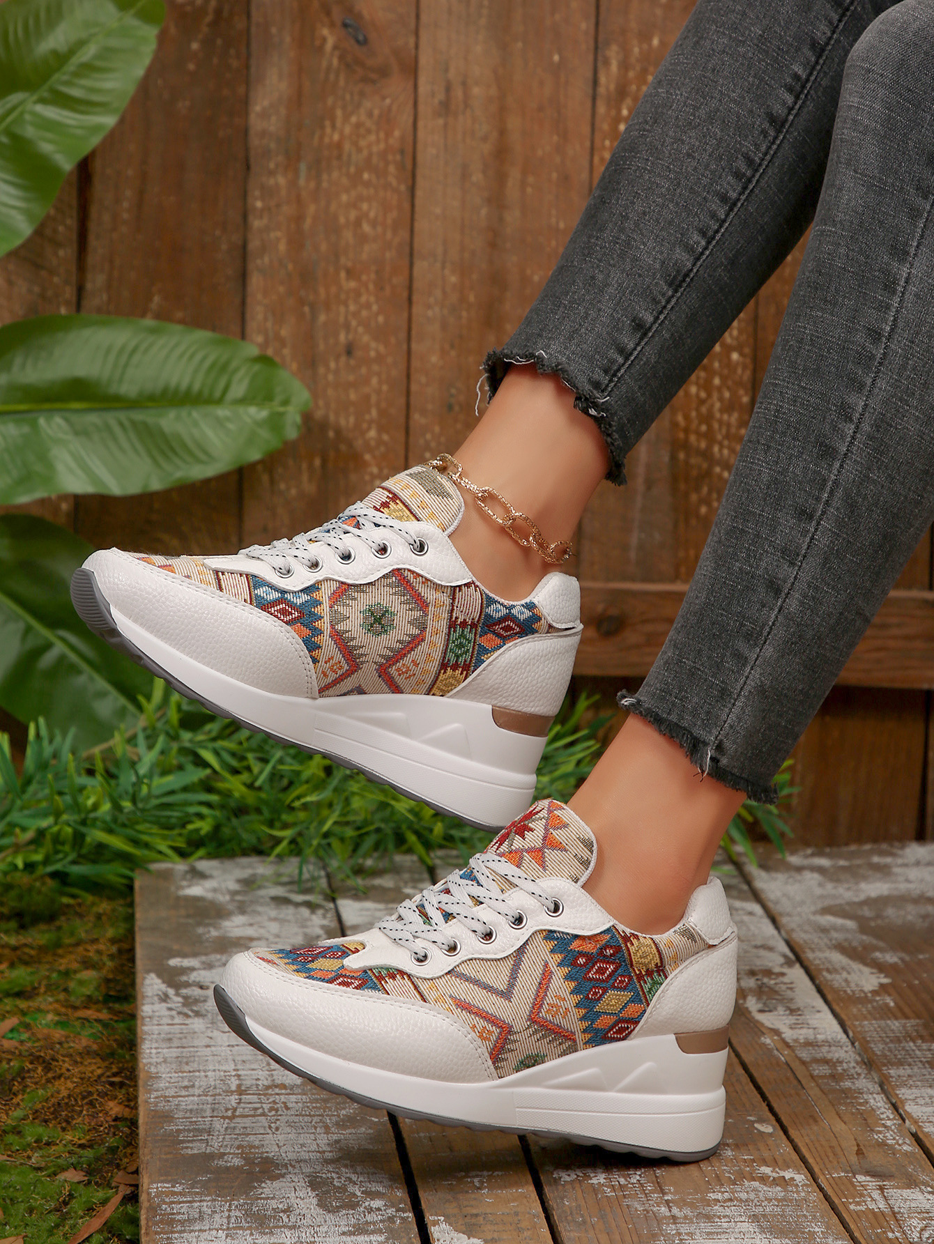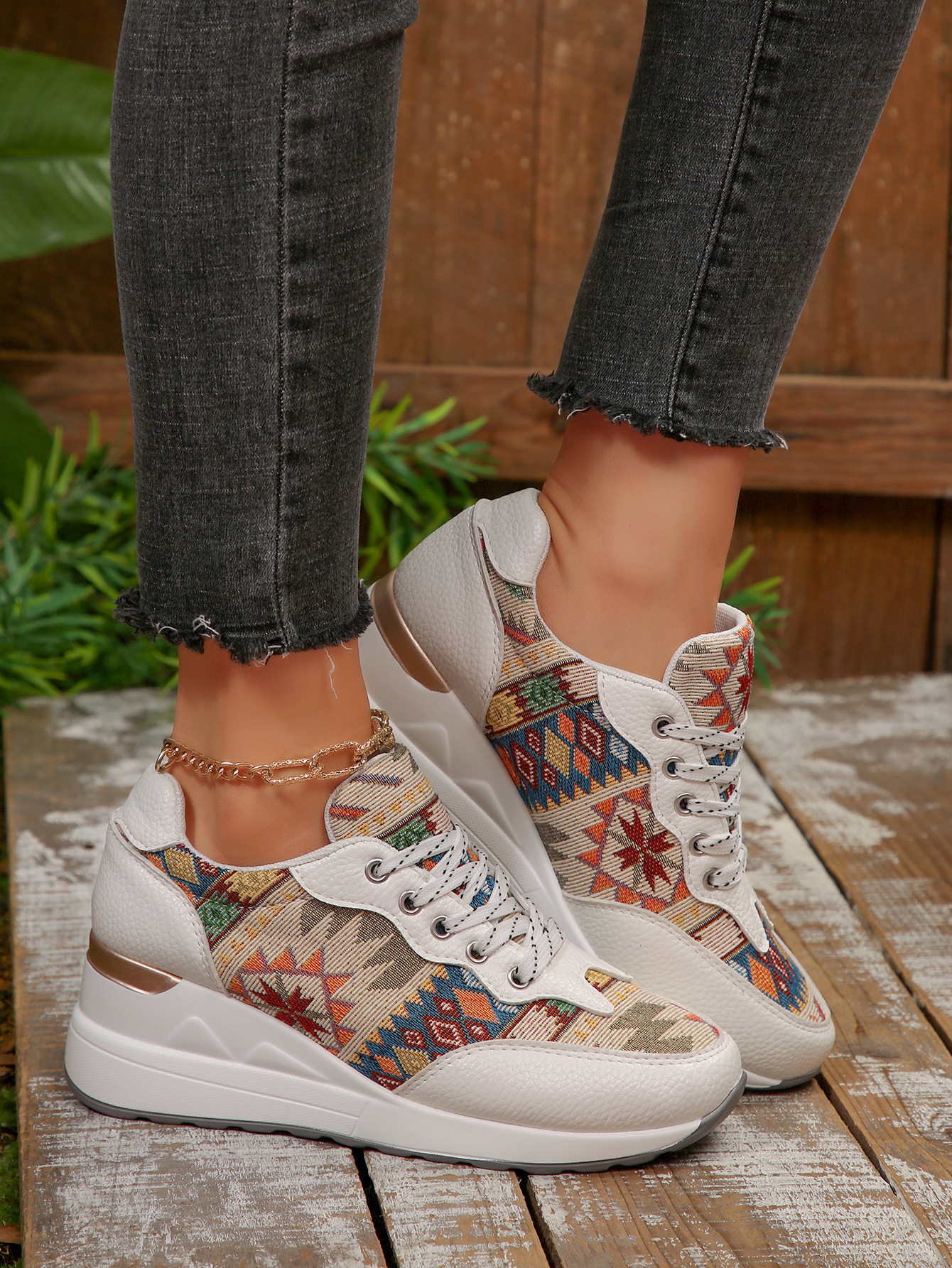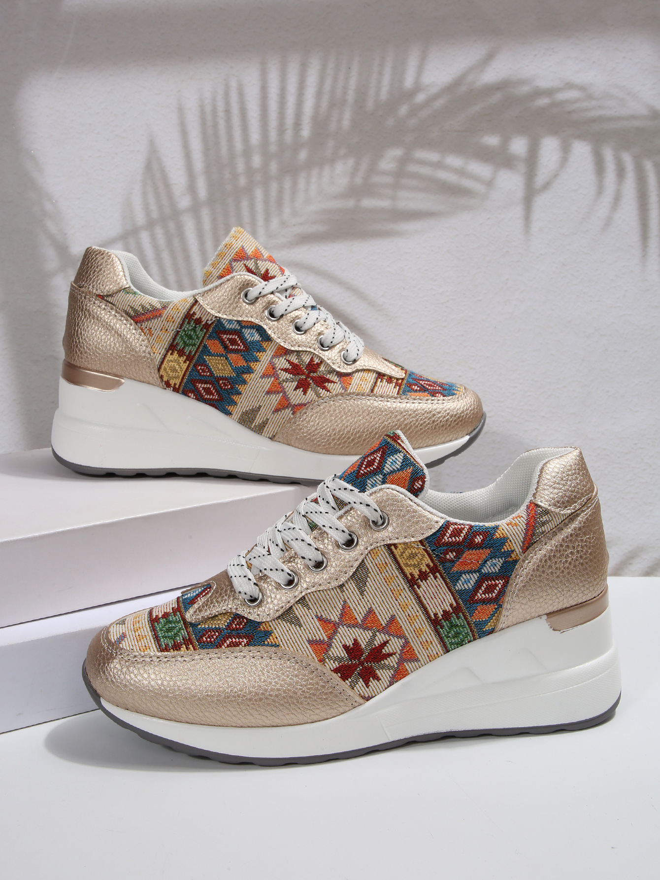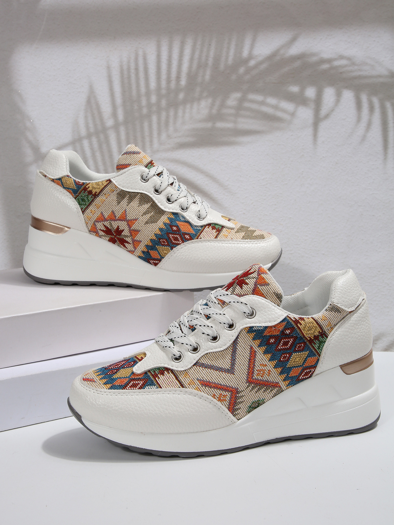 2025 새로운 가을 대외 무역 캐주얼 스포츠 신발 여성 웨지 에스닉 스타일 컬러 매칭 천 포레스트 검프 아빠 유행 신발 43스토어 가기