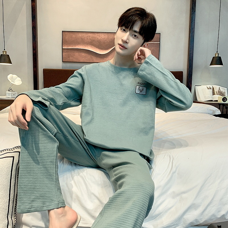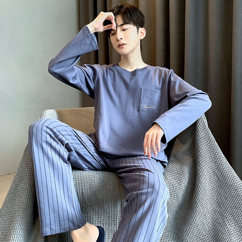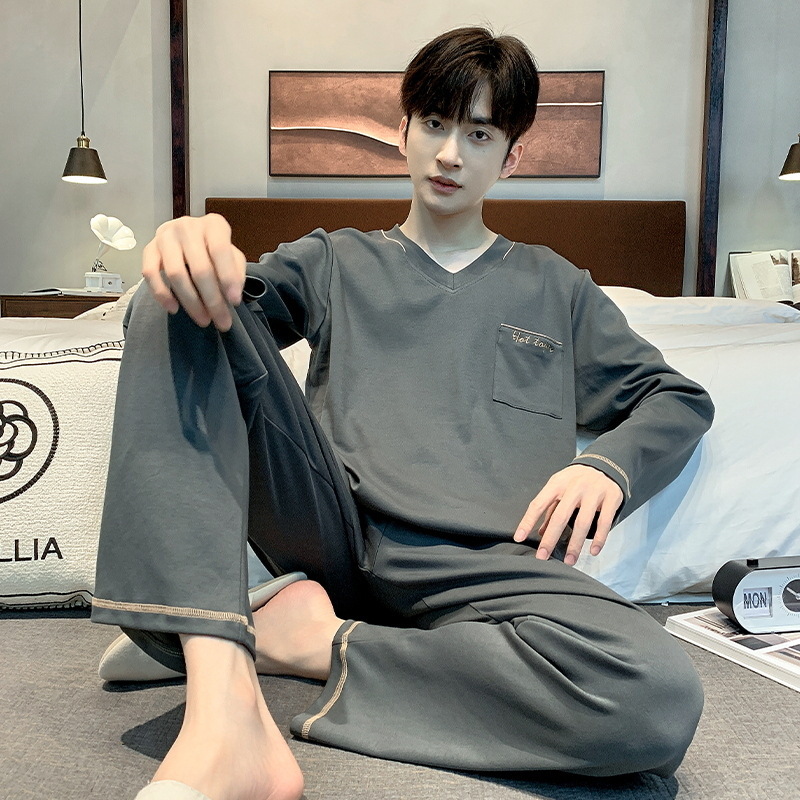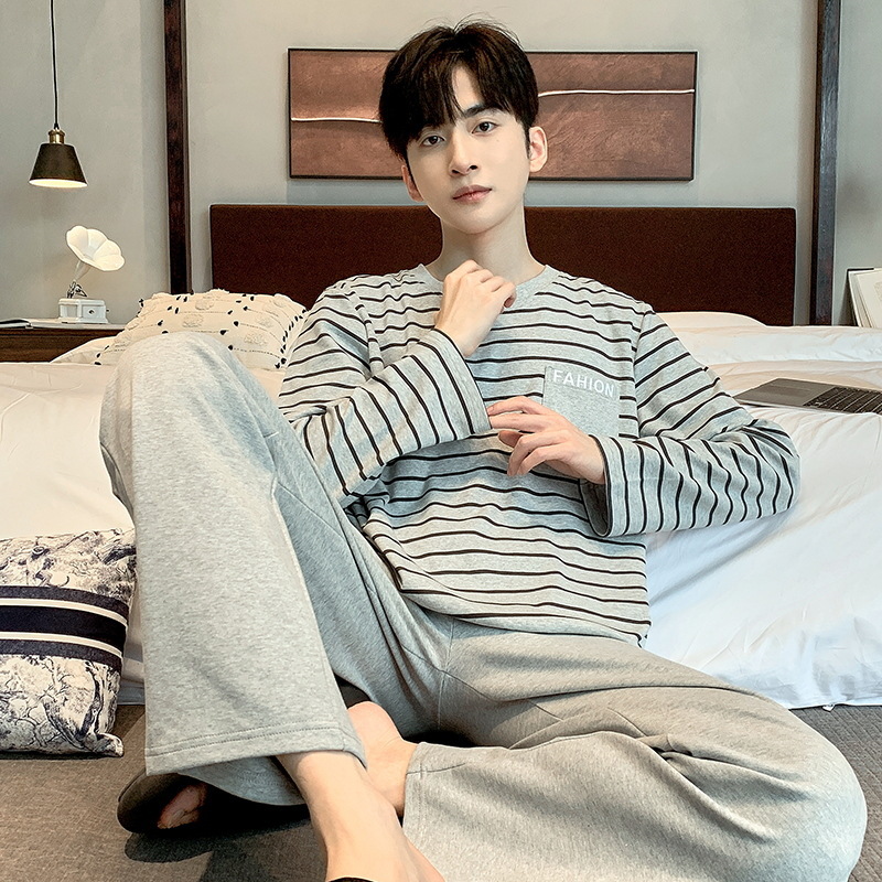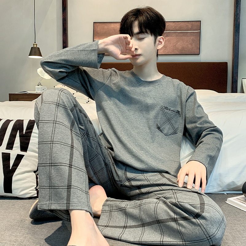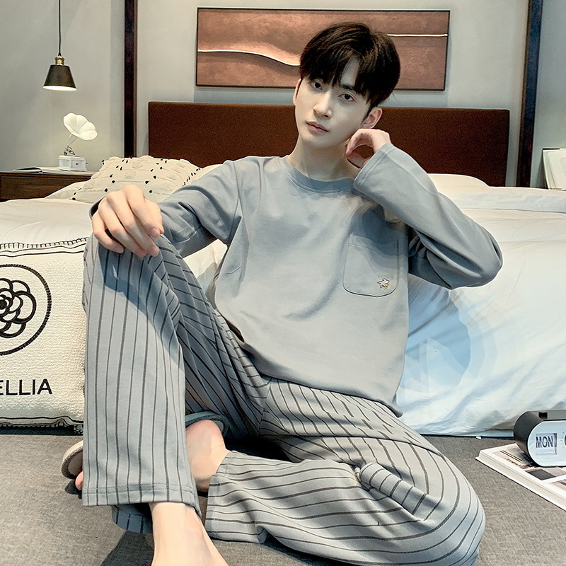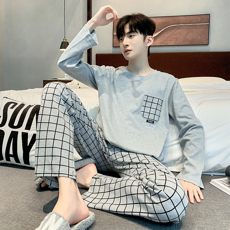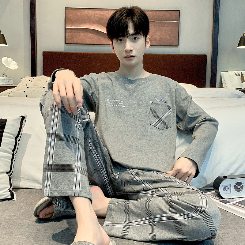 봄 가을 남성용 긴팔 긴바지 잠옷 세트 가을 겨울용 면 소재 루즈핏 캐주얼 청소년 홈웨어스토어 가기