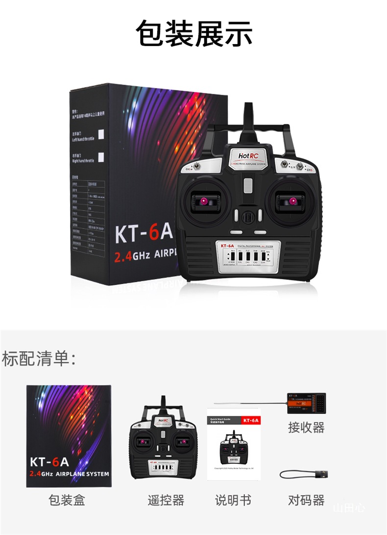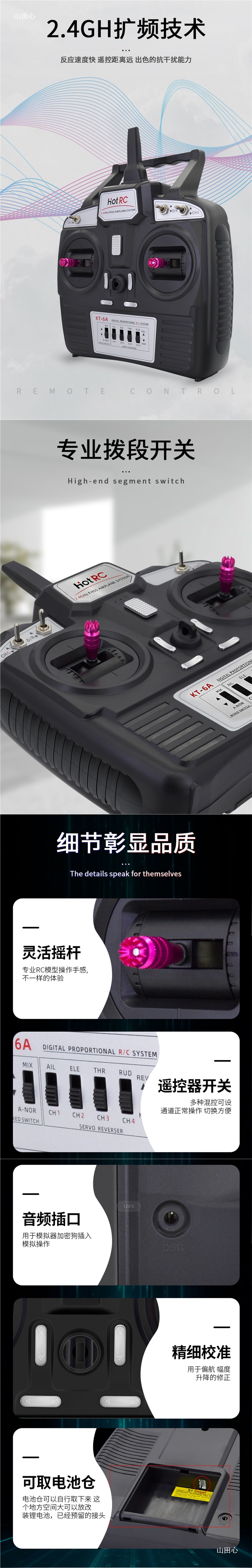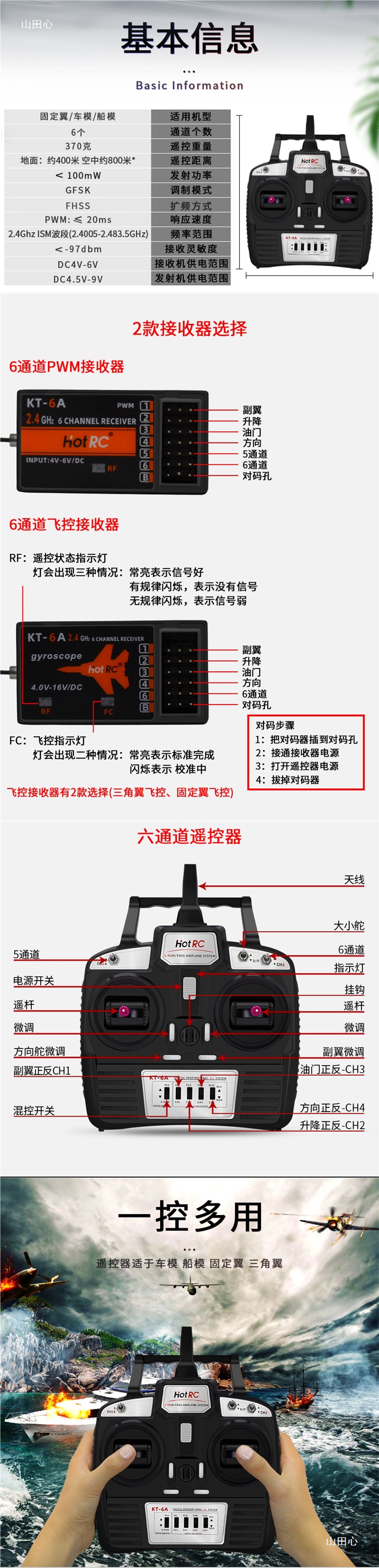 HOTRC KT-6A 항공기 모델 2.4G 원격 제어 6 채널 수신기 Su-27 종이 비행기 글라이더