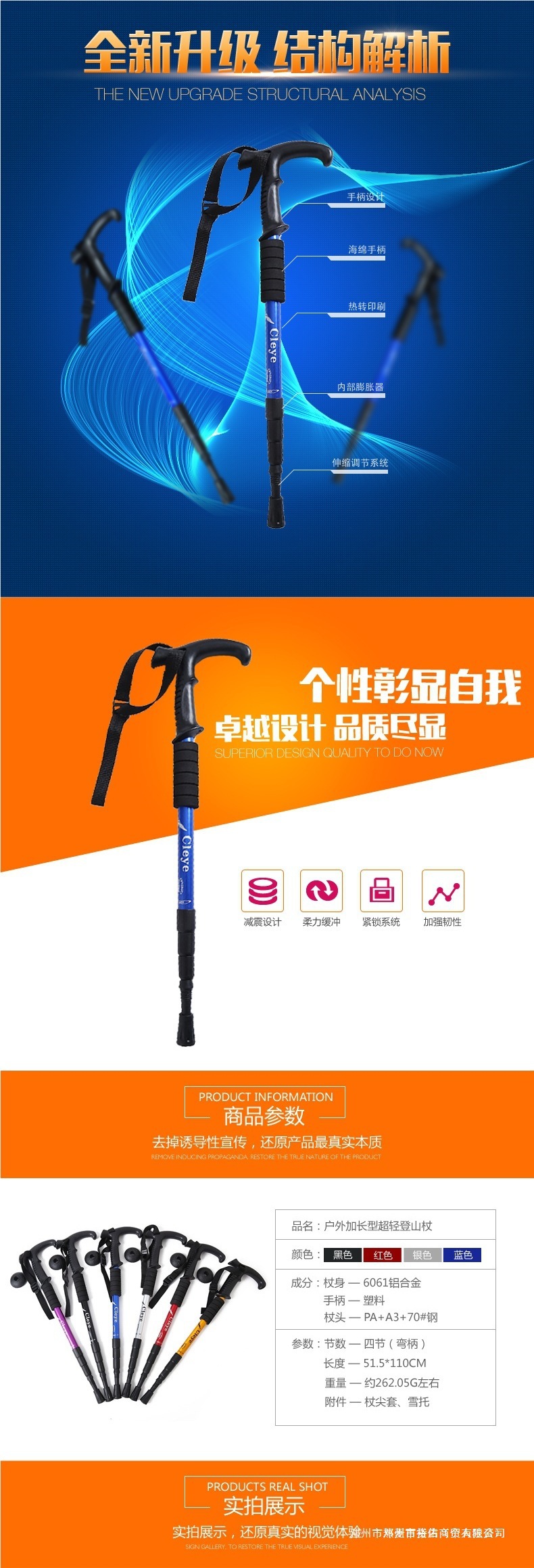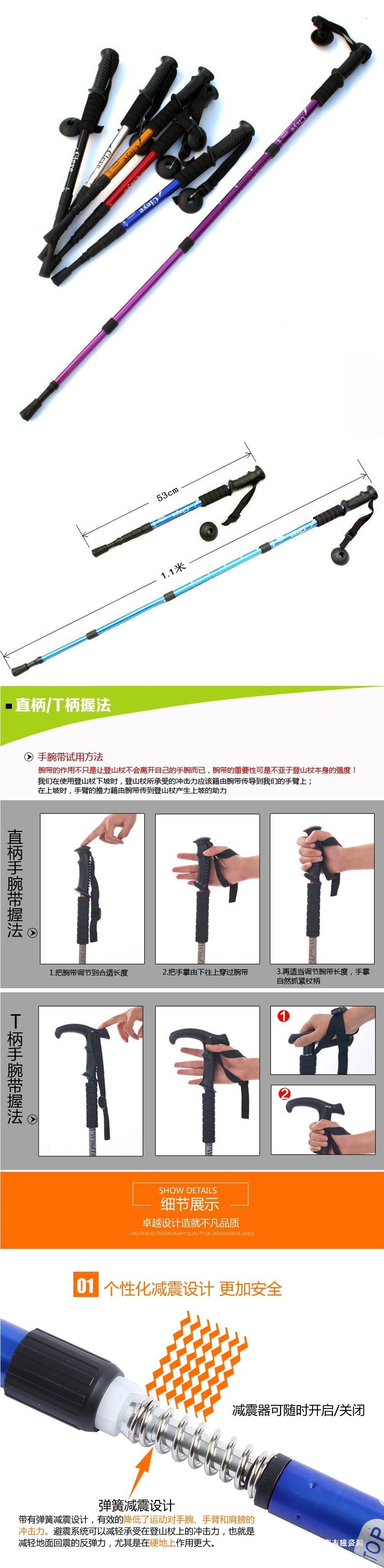 M6X 야외 트레킹 스틱 티타늄 합금 T 자형 스트레이트 핸들 스키 4 섹션 텔레스코픽 접이식 하이킹 미끄럼 방지 스틱
