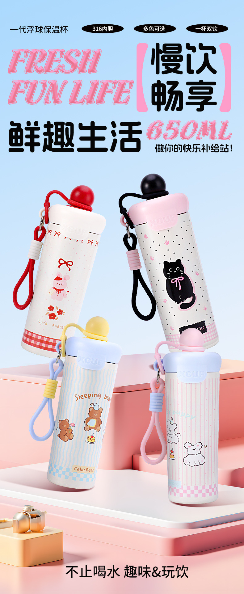 2025년 신제품~ 스테인리스 보온병 316 여성용 예쁜 만화 캐릭터 귀여운 휴대용 사무실 물컵 빨대컵스토어 가기