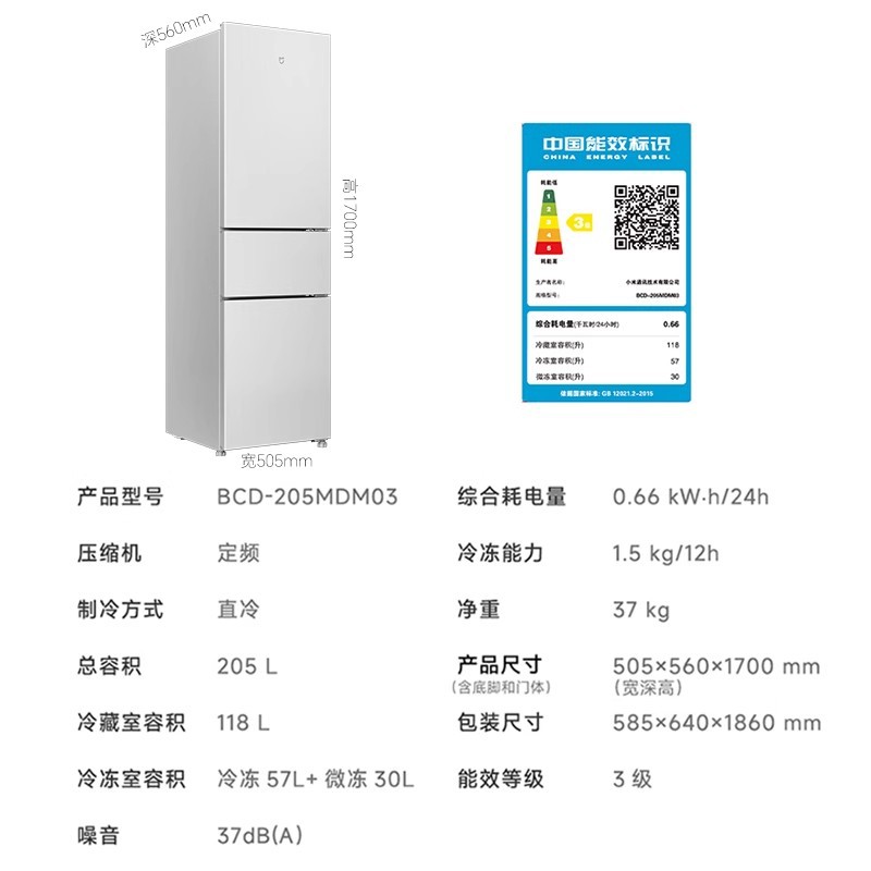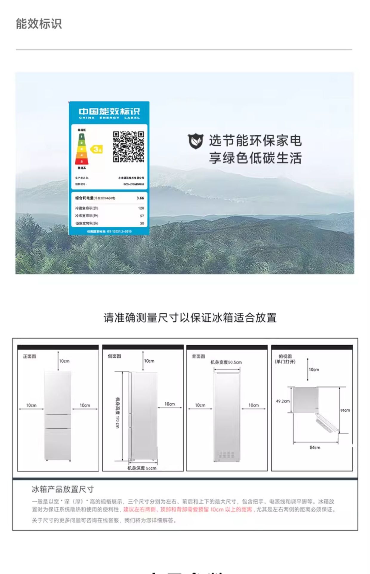 Xiaomi Mijia 양문형 가정용 소용량 절전 초박형 냉동 냉장 임대 기숙사 소형 냉장고스토어 가기