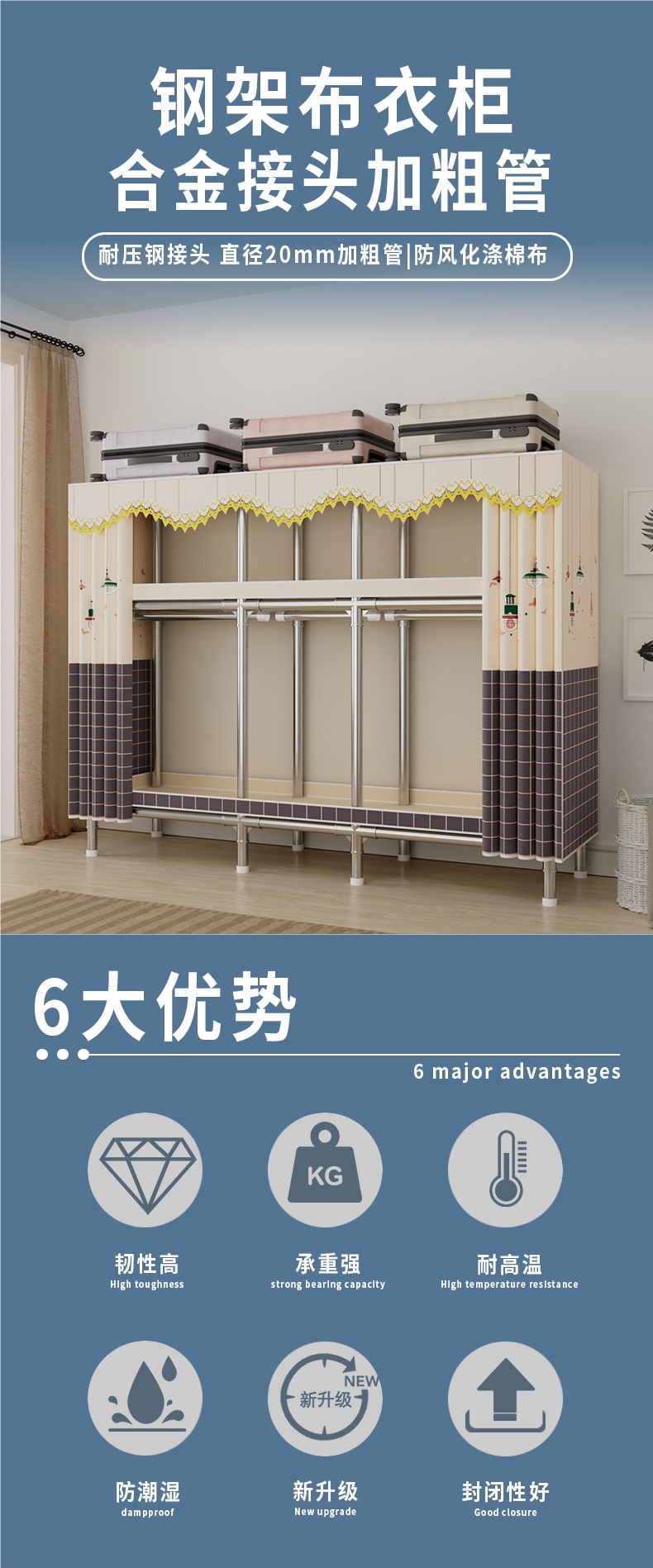 간단한 옷장, 가정용 침실 천 옷장, 견고하고 내구성이 뛰어난 임대 주택, 전체 강철 프레임, 두껍고 두꺼운 조립식 보관 캐비닛