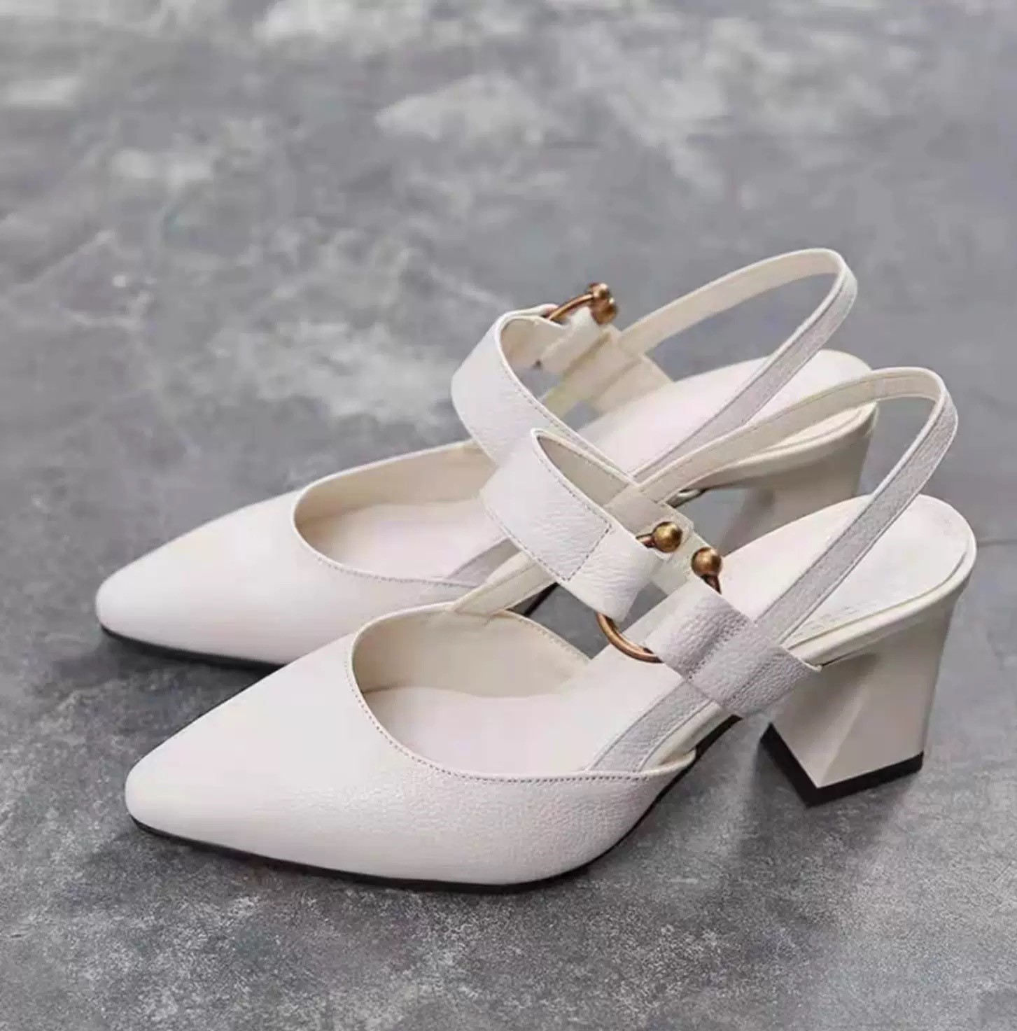 여성용 뾰족한 발가락 하이힐 샌들, 뒷면이 빈 진짜 원 스트랩, 새로운 두꺼운 굽 가죽 다용도 여성 신발, 여름 아우터웨어 2025스토어 가기