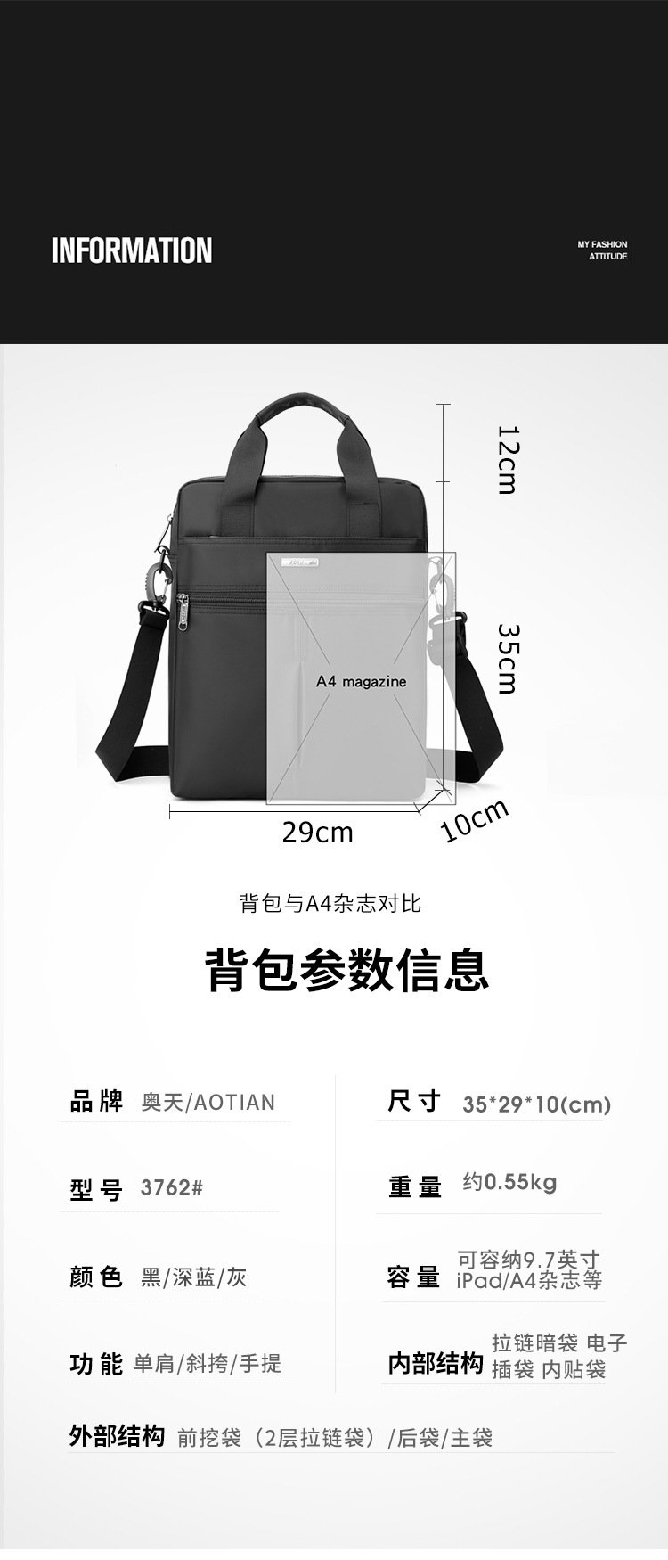 Aotian 새로운 캐주얼 비즈니스 남자 서류 가방 대용량 어깨 메신저 핸드백 옥스포드 헝겊 가방 3762 #스토어 가기