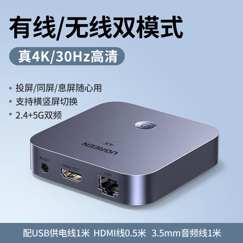 • 【4K/30Hz】2.4/5.8G 듀얼 주파수 더 부드러운 + 수평 및 수직 화면 전환 + 유무선 듀얼 모드 + 오디오 및 비디오 분리 지원