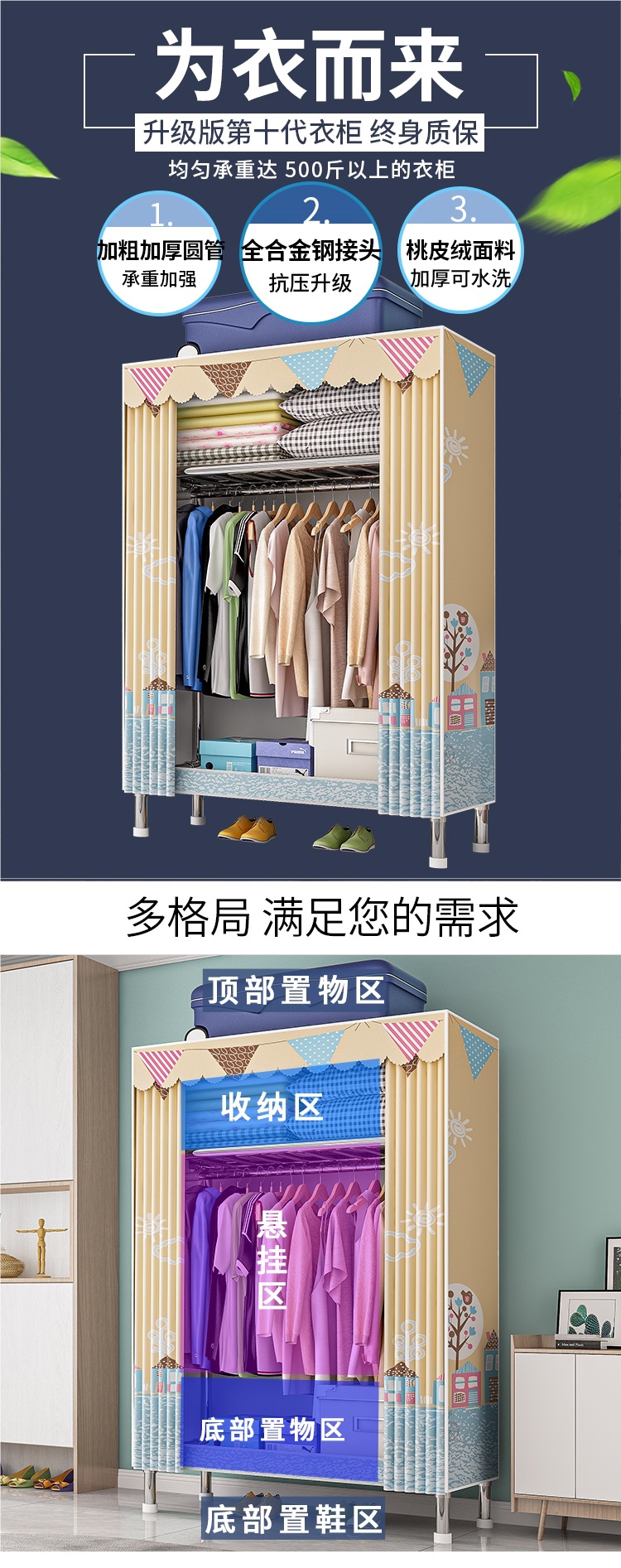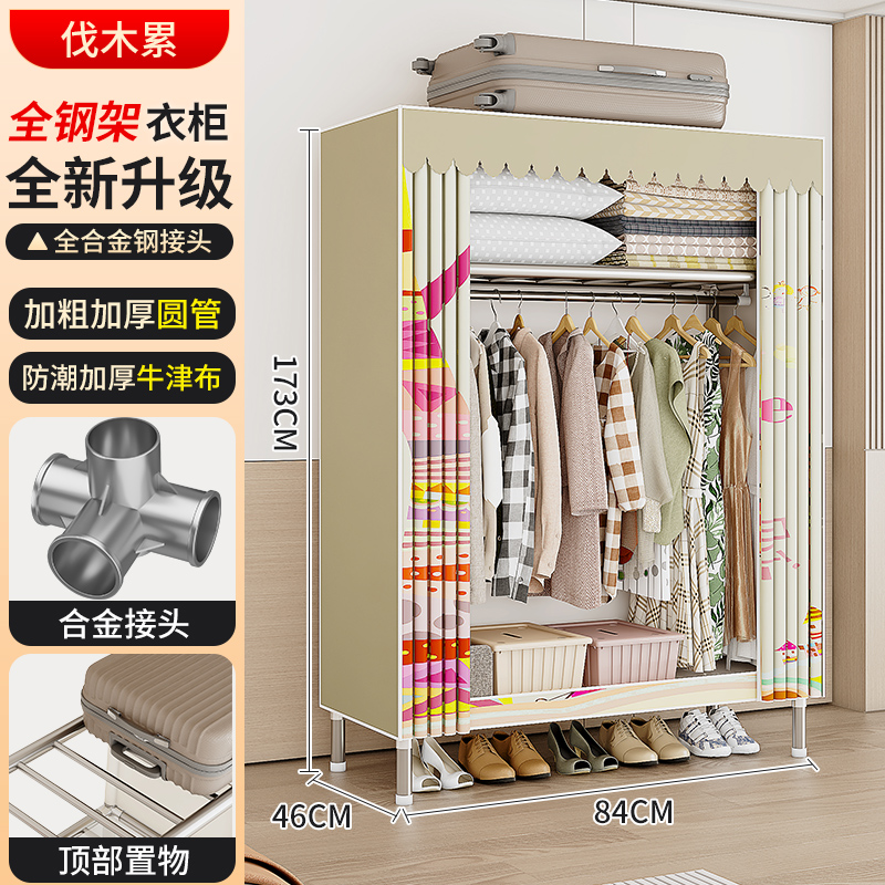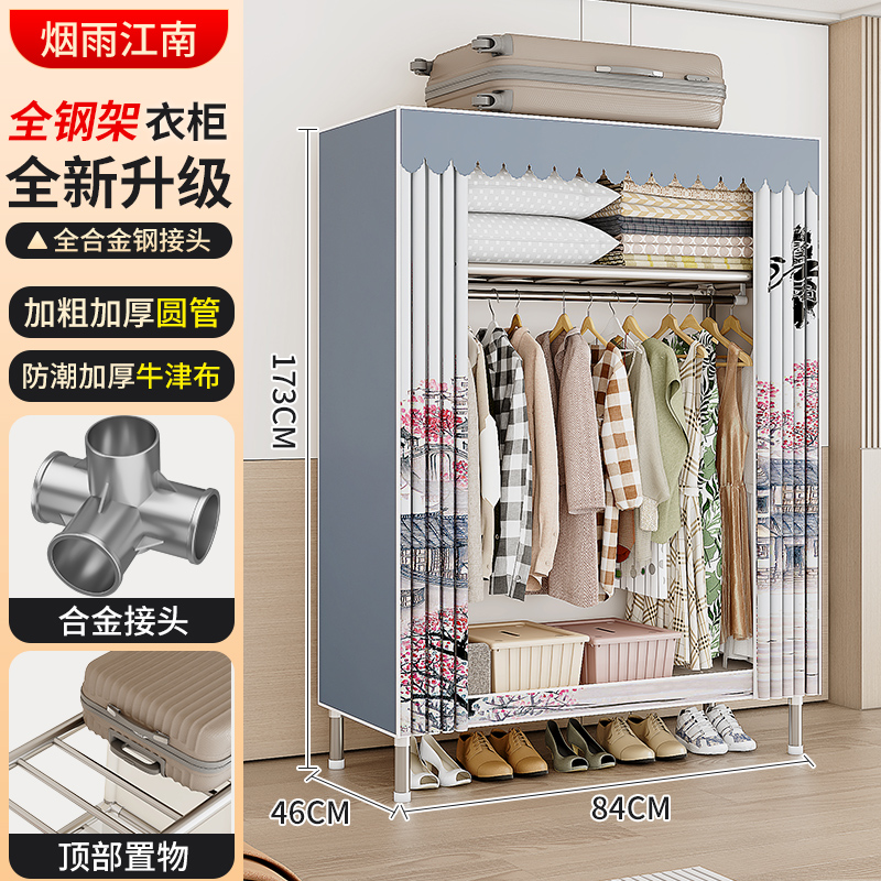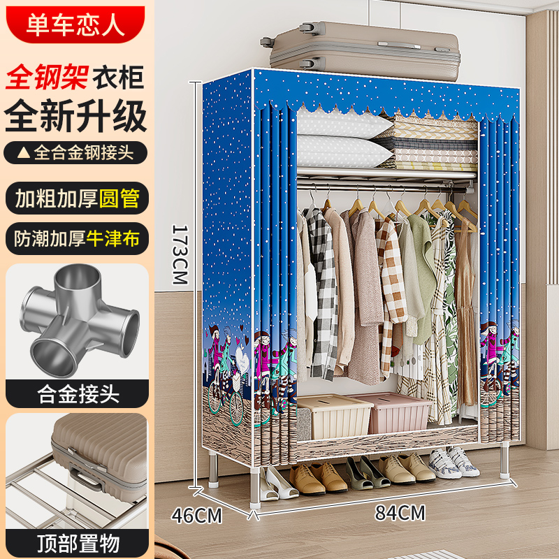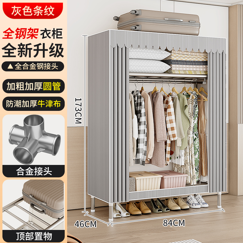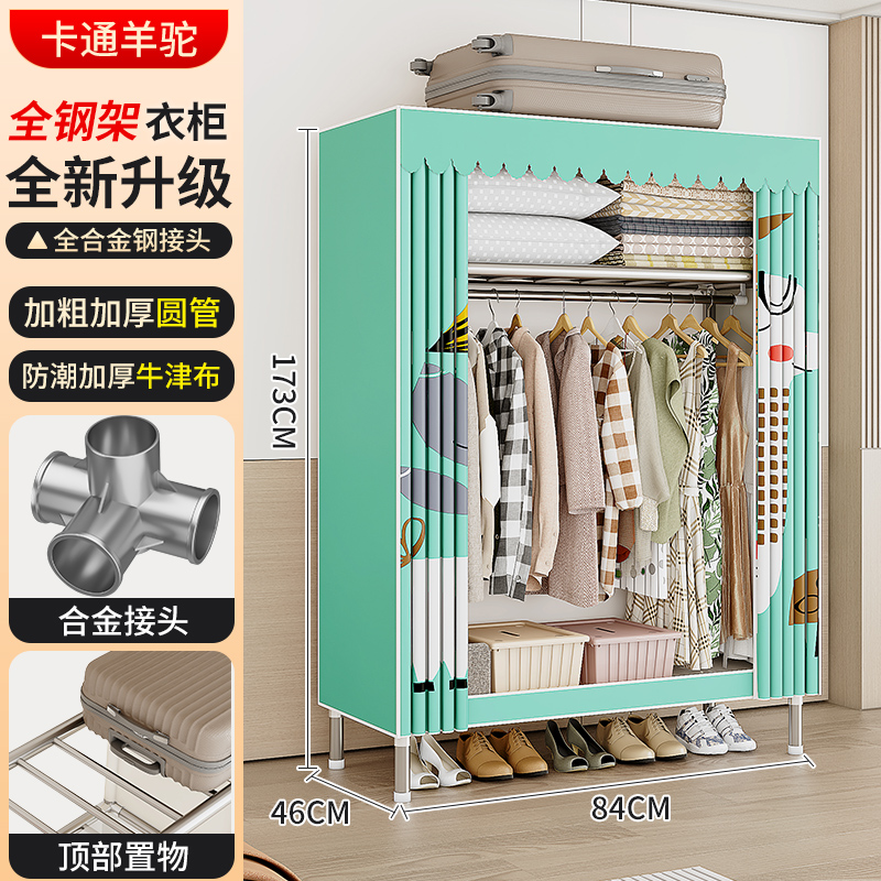 옷장 강철 프레임 구조 새로운 2024 임대 옷장 홈 침실 간단한 조립 기숙사 보관 캐비닛