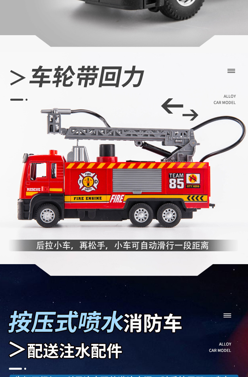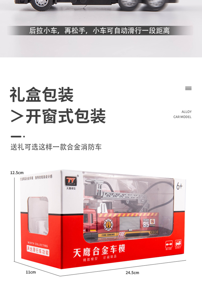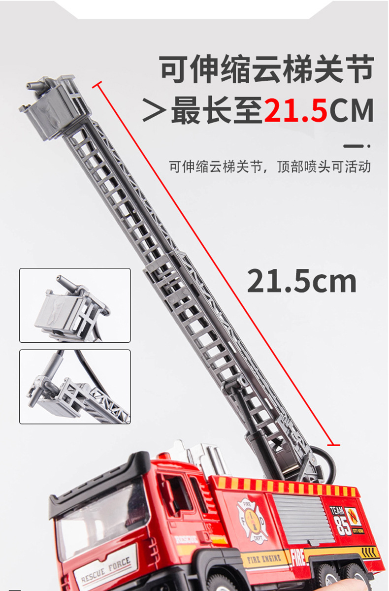 시뮬레이션 합금 소방차 어린이 장난감 풀백 엔지니어링 차량 구조 텔레스코픽 사다리 차량 소방차 모델 도매