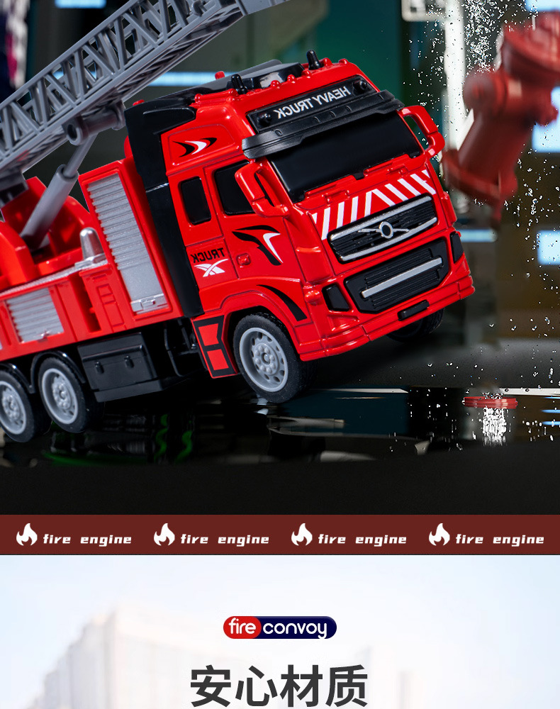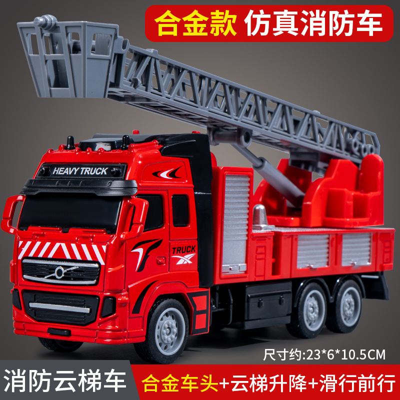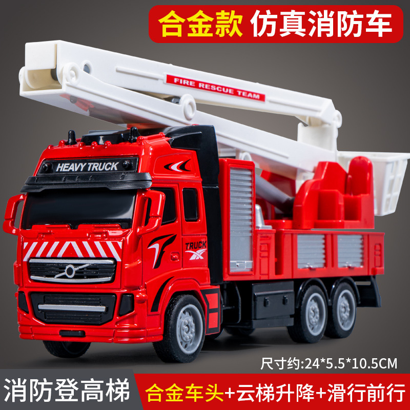 시뮬레이션 합금 소방차 어린이 장난감 풀백 엔지니어링 차량 구조 텔레스코픽 사다리 차량 소방차 모델 도매스토어 가기
