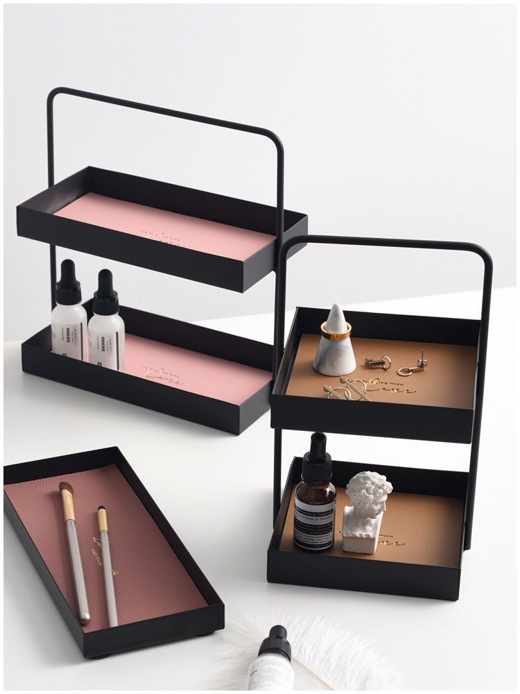 북유럽 스타일 철 가죽 보관함 더블 레이어 화장품 보석 키 보관 거실 커피 테이블 보관함
