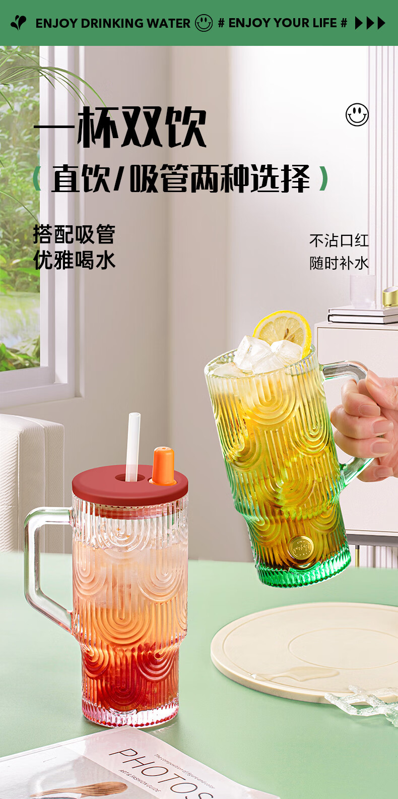 국경을 넘는 새로운 Bingba 컵 용량 밀짚 컵 유리 물 컵 소녀의 멋진 사무실 물 컵스토어 가기