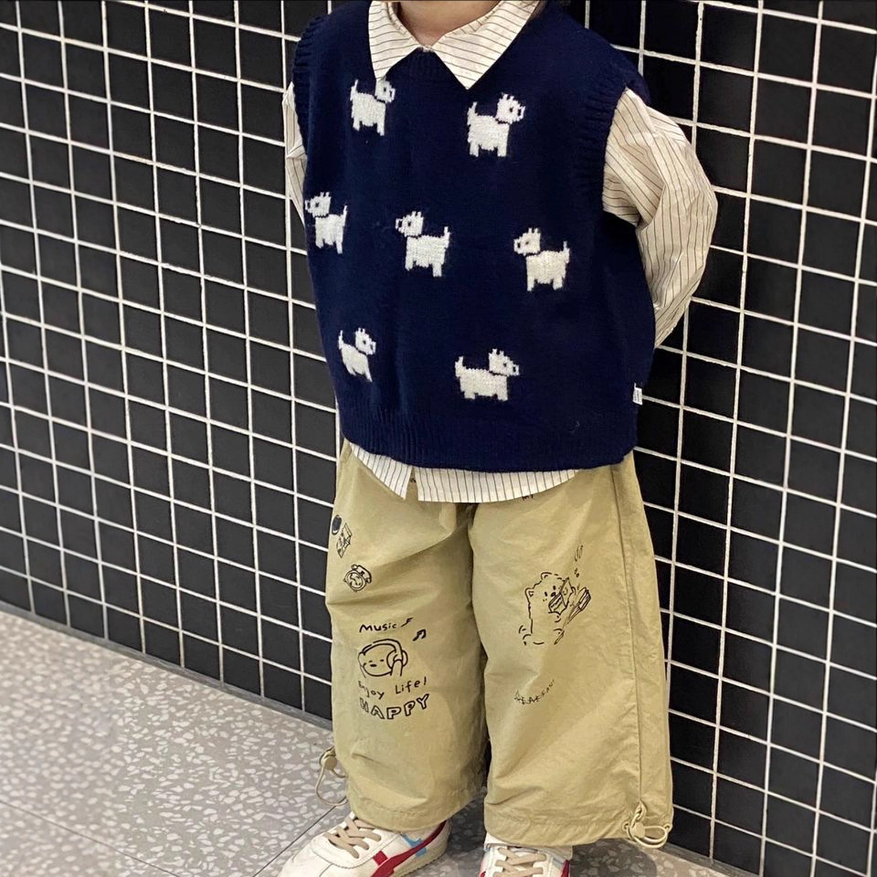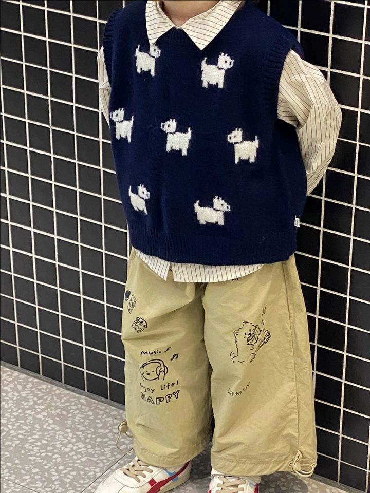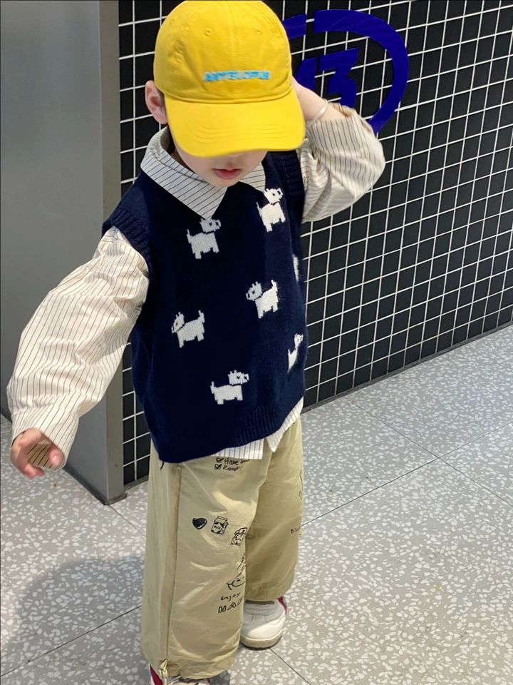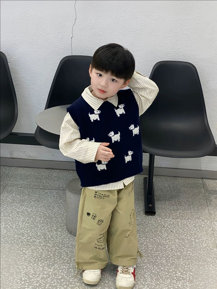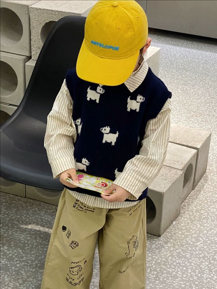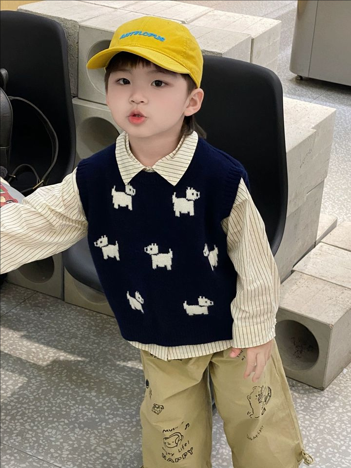 어린이 니트 조끼 2025 새로운 봄 남성과 여성의 아기 풀오버 라운드 넥 조끼 어린이 만화 스웨터 유행스토어 가기