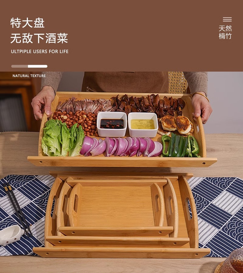 대나무 트레이 차 트레이 일본식 가정용 물 컵 트레이 직사각형 나무 사탕 트레이 호텔 레스토랑 차 세트 바베큐 트레이