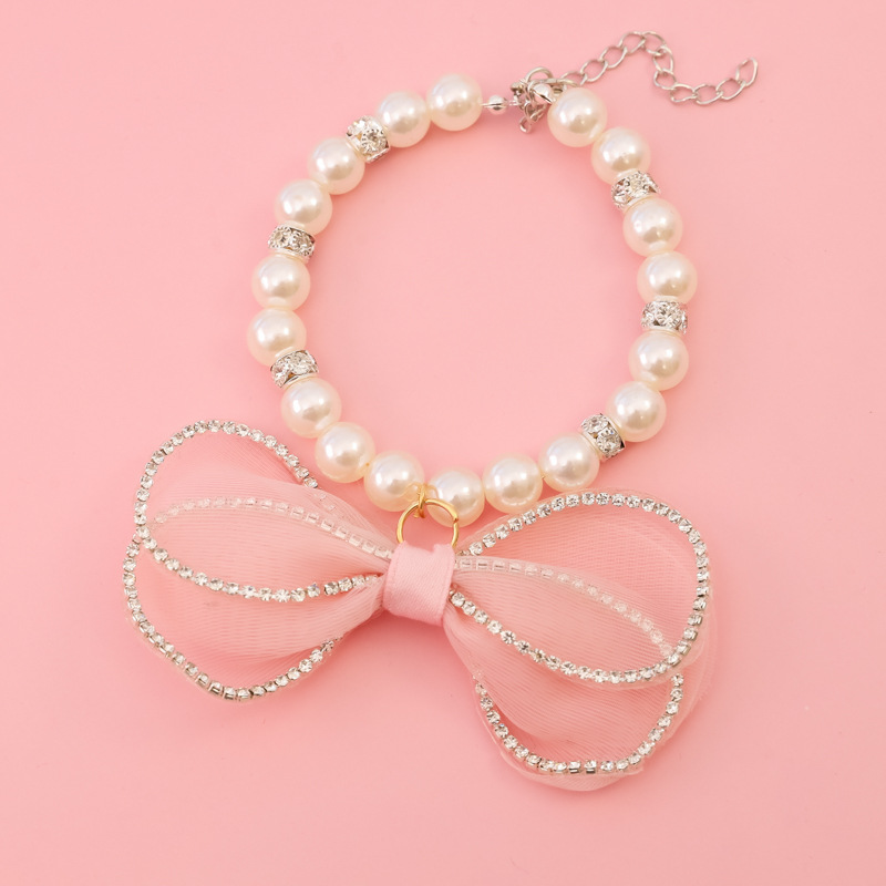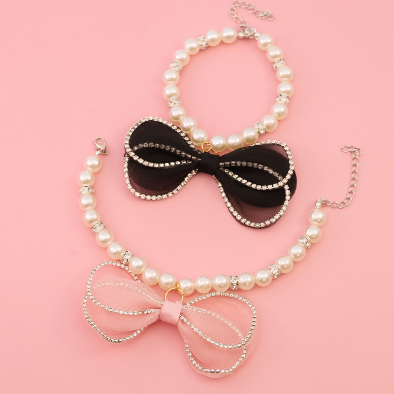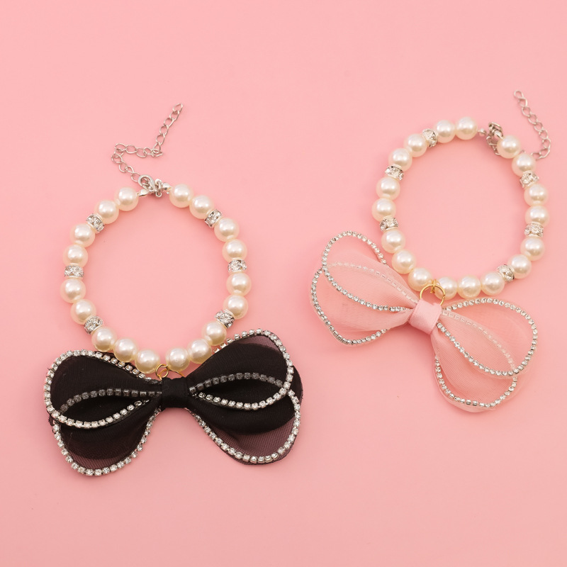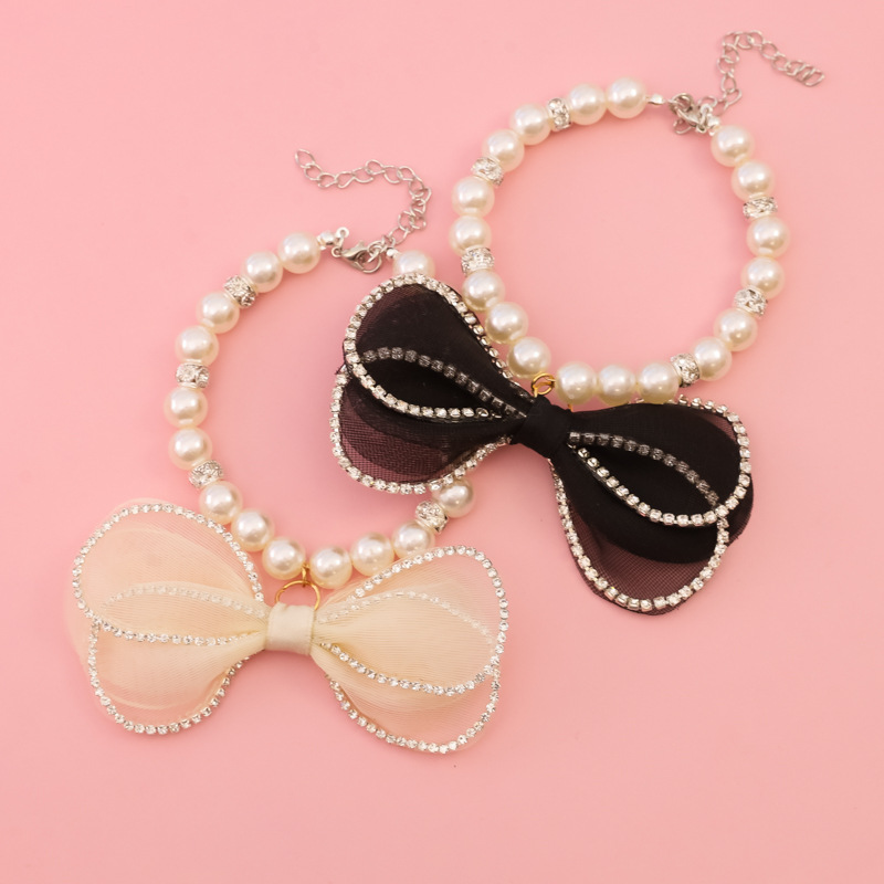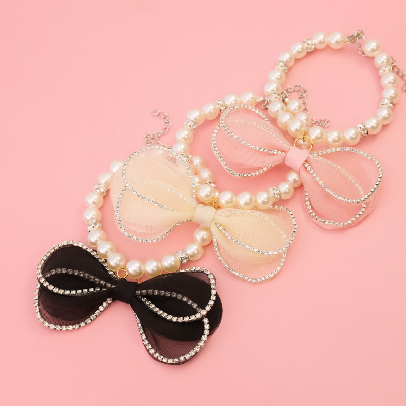 애완 동물 진주 목걸이 고양이와 개 목걸이 라인 석 레이디 메쉬 보우 하이 엔드 장식 무음스토어 가기