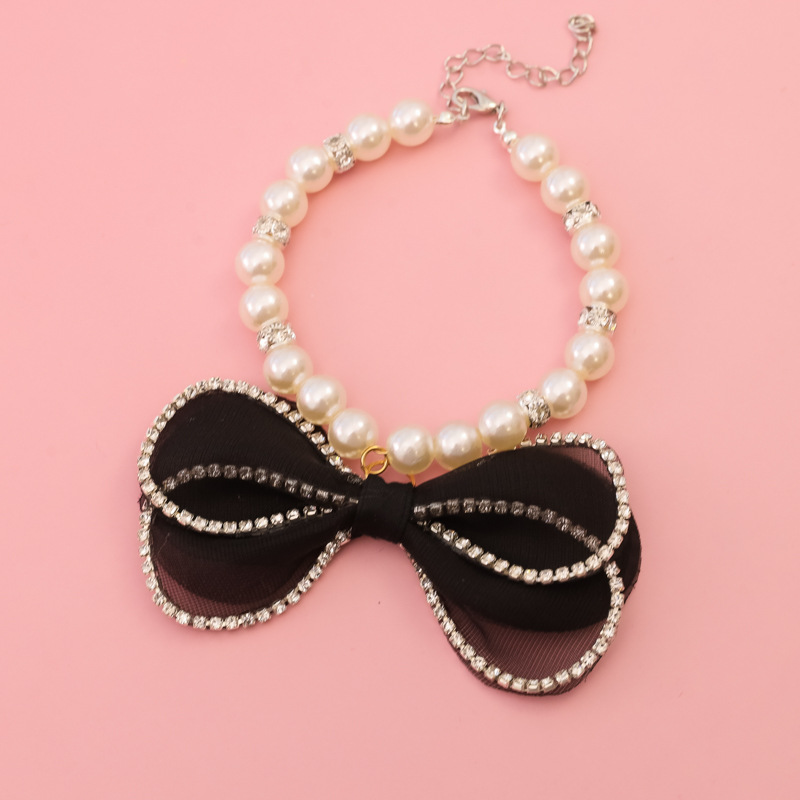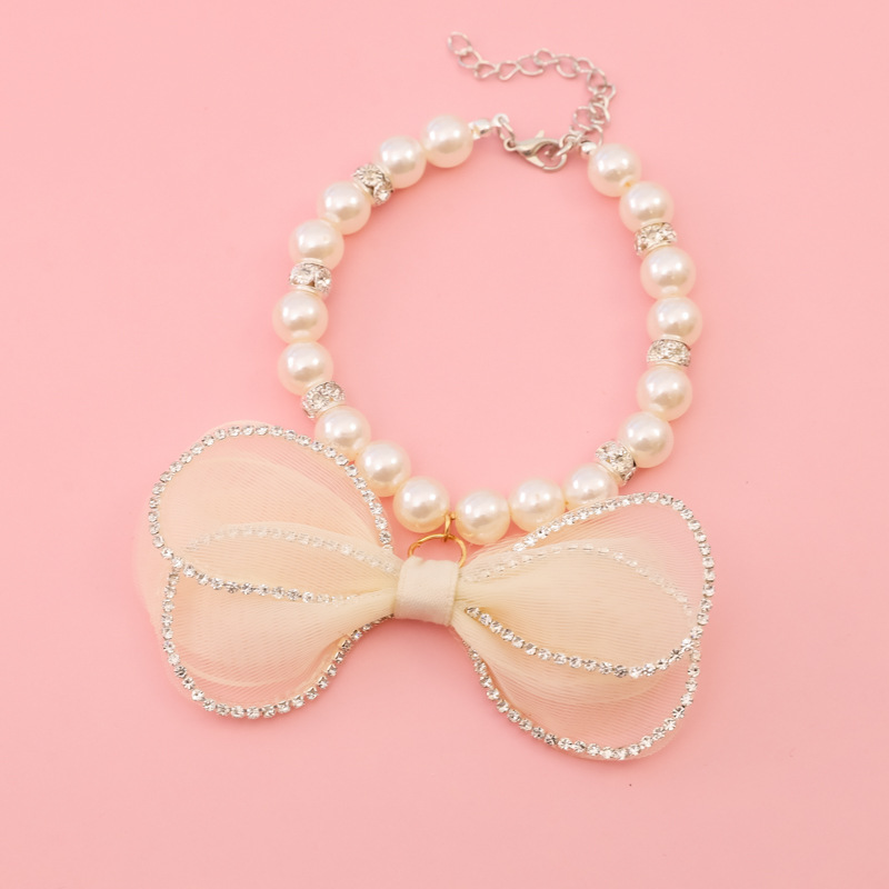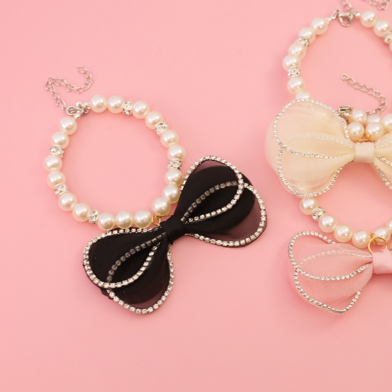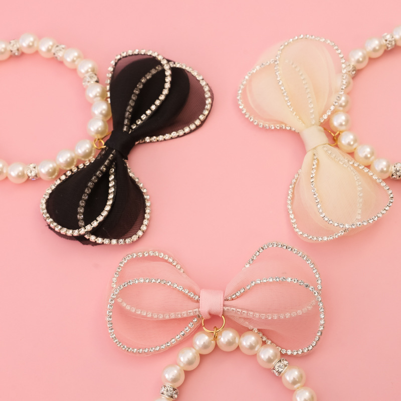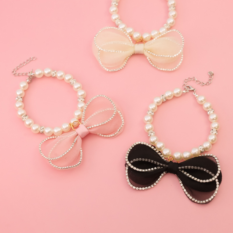애완 동물 진주 목걸이 고양이와 개 목걸이 라인 석 레이디 메쉬 보우 하이 엔드 장식 무음스토어 가기
