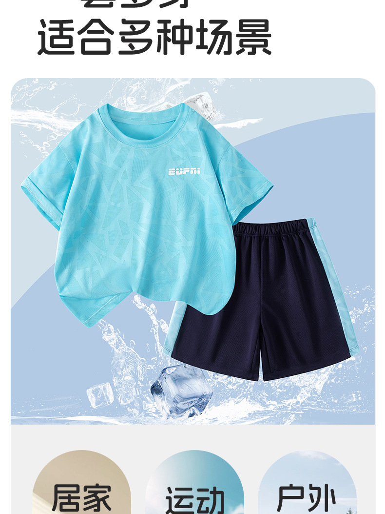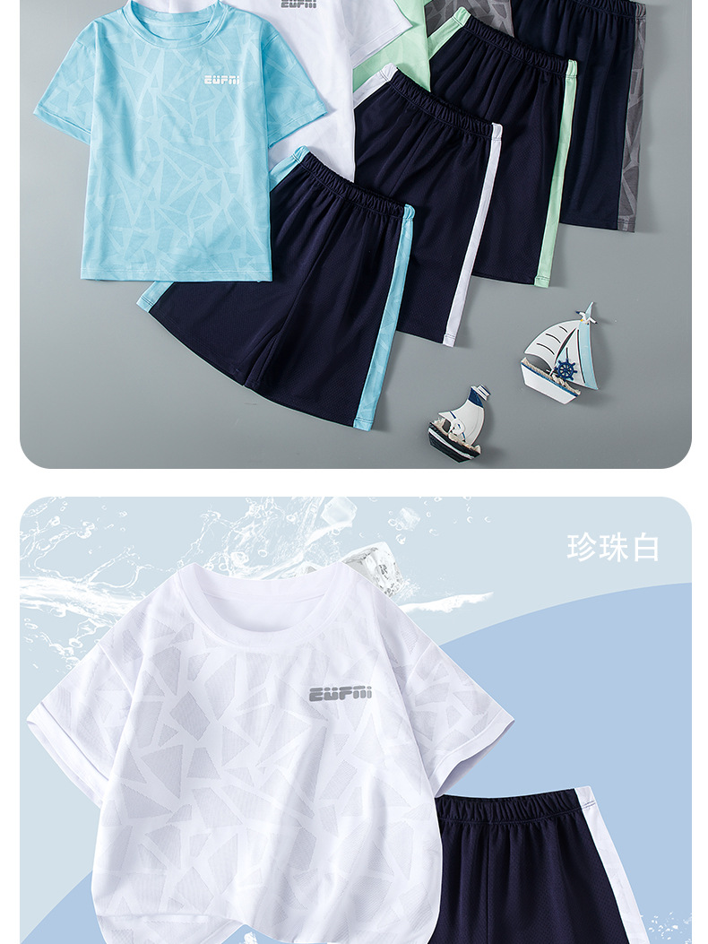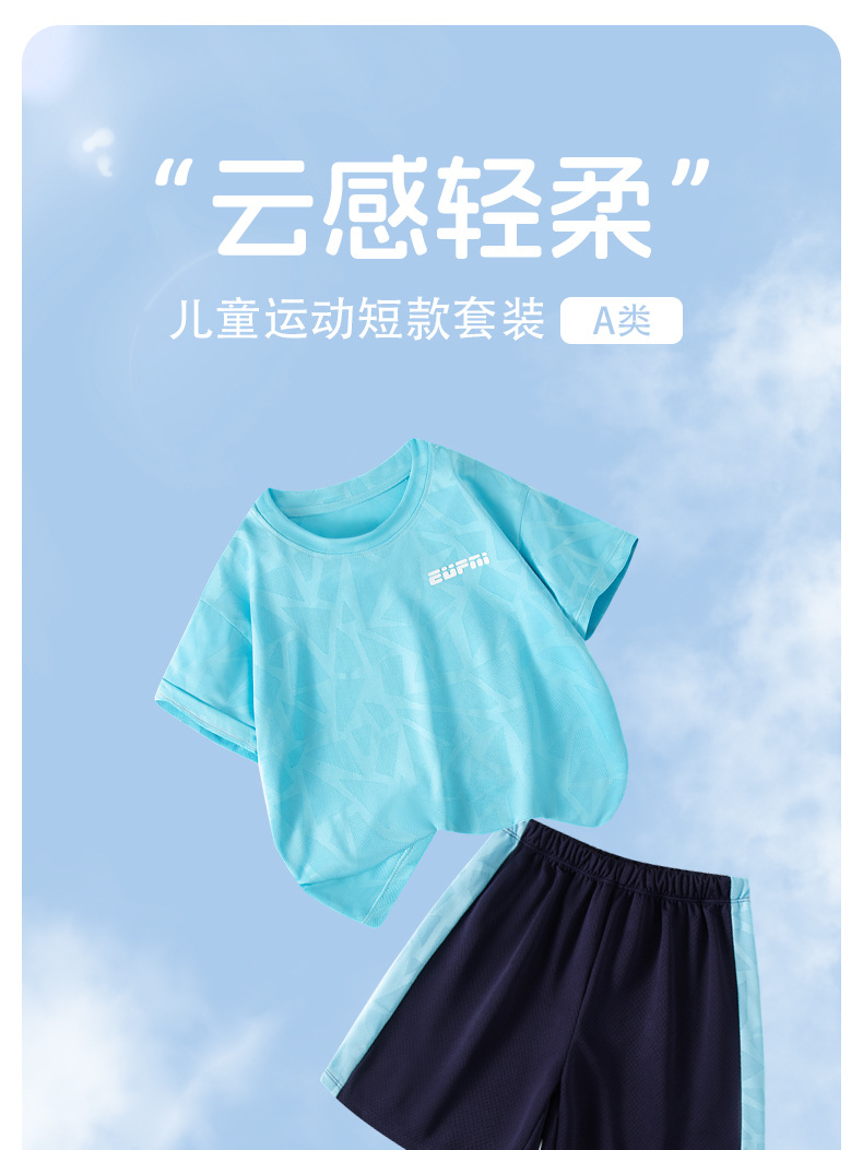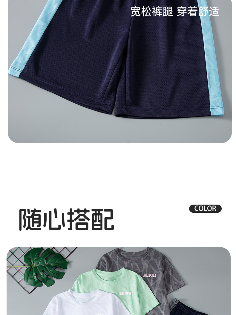 어린이 여름 반팔 반바지 스포츠 정장 얇은 중대형 어린이 야외 유행 청소년 메쉬 통기성 정장