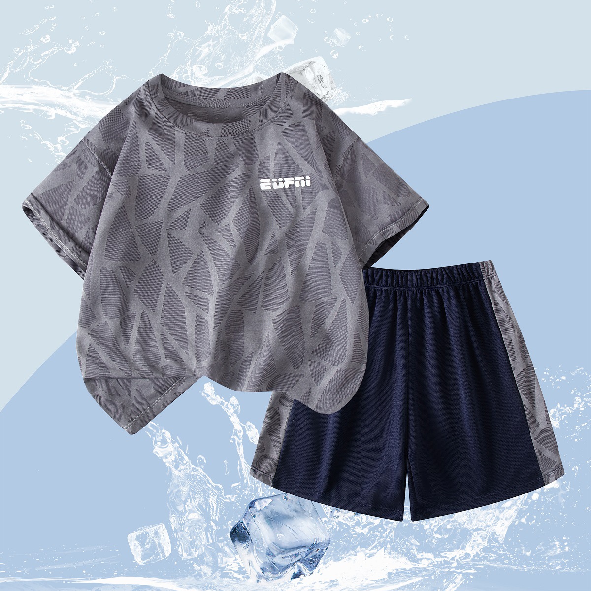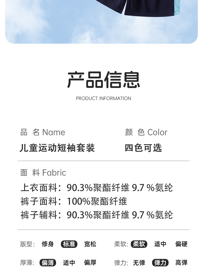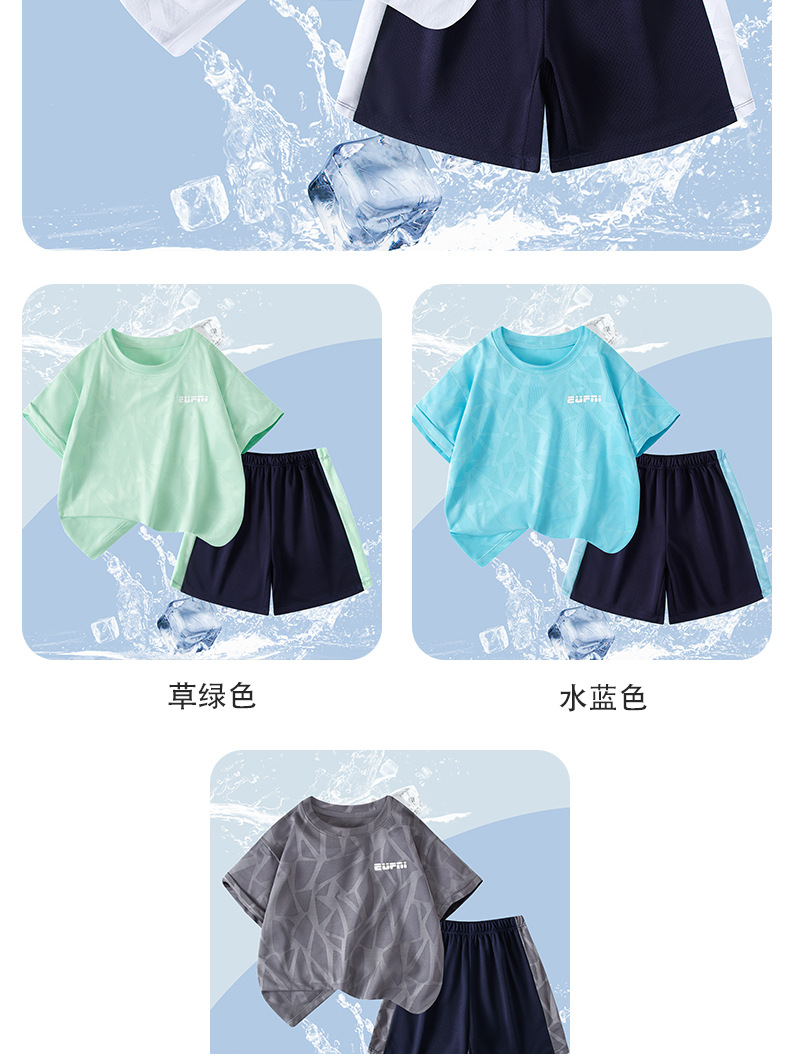 어린이 여름 반팔 반바지 스포츠 정장 얇은 중대형 어린이 야외 유행 청소년 메쉬 통기성 정장