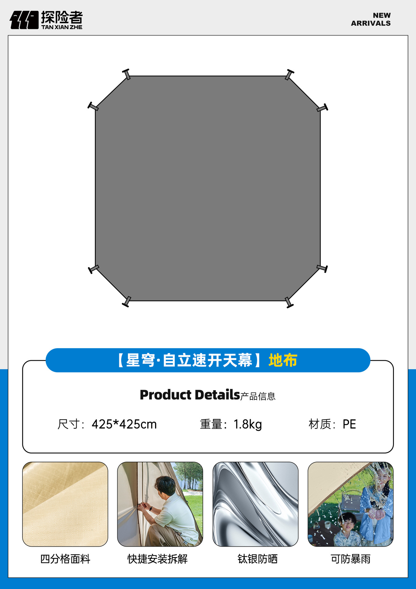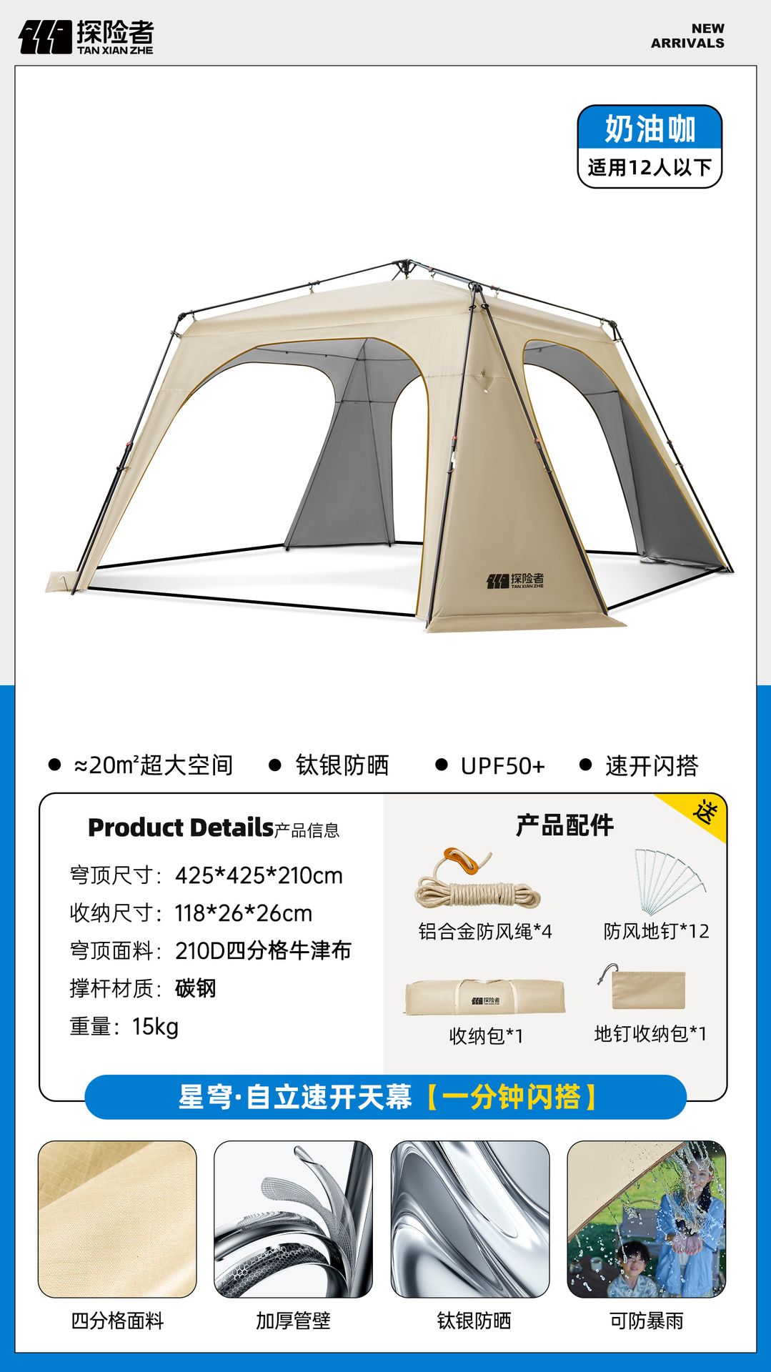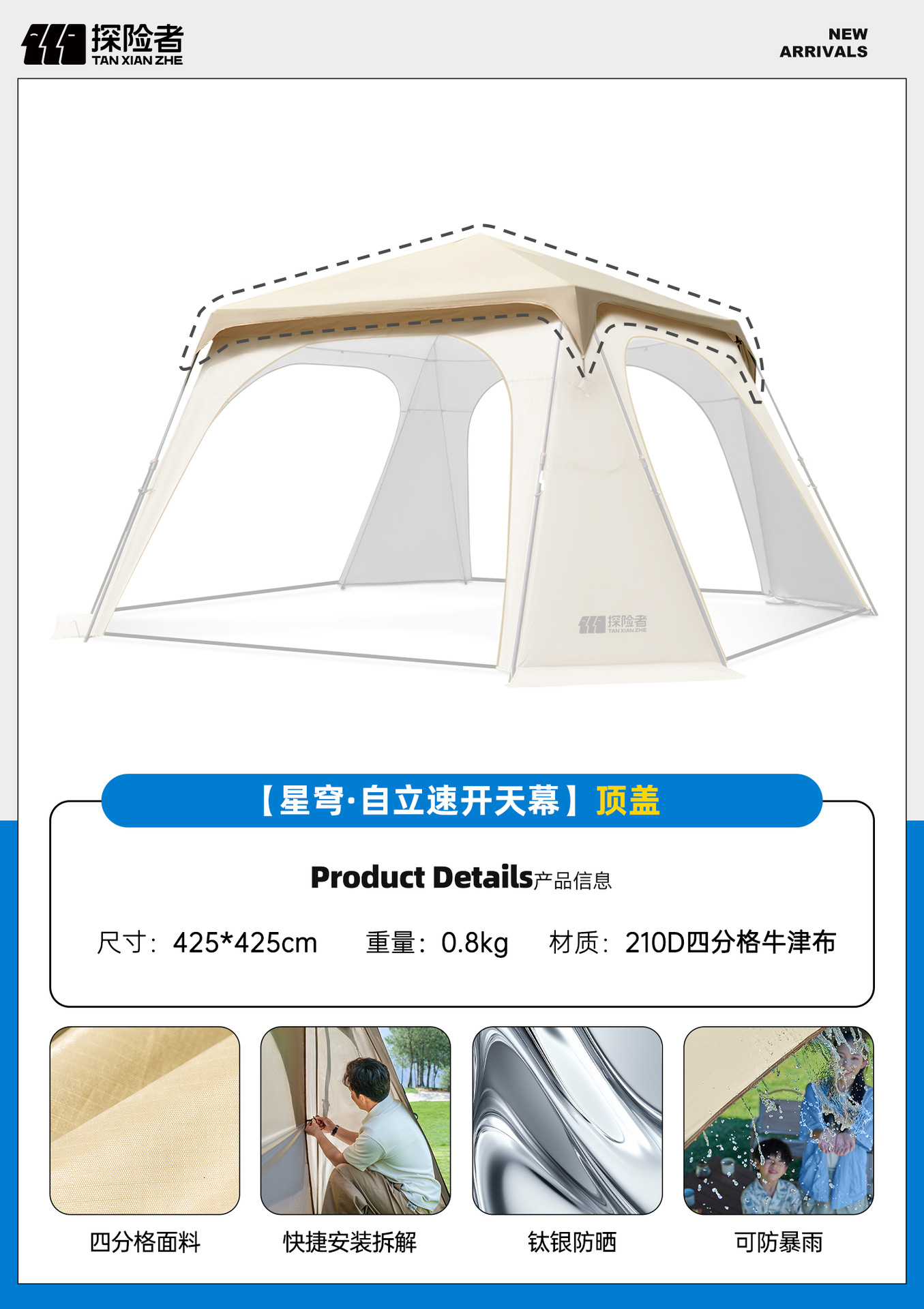 • 스타돔 캐노피 + 탑커버 + 선쉐이드 도어커튼*2 + 메쉬 선쉐이드 도어커튼*2와 함께 사용하는 것을 권장합니다.