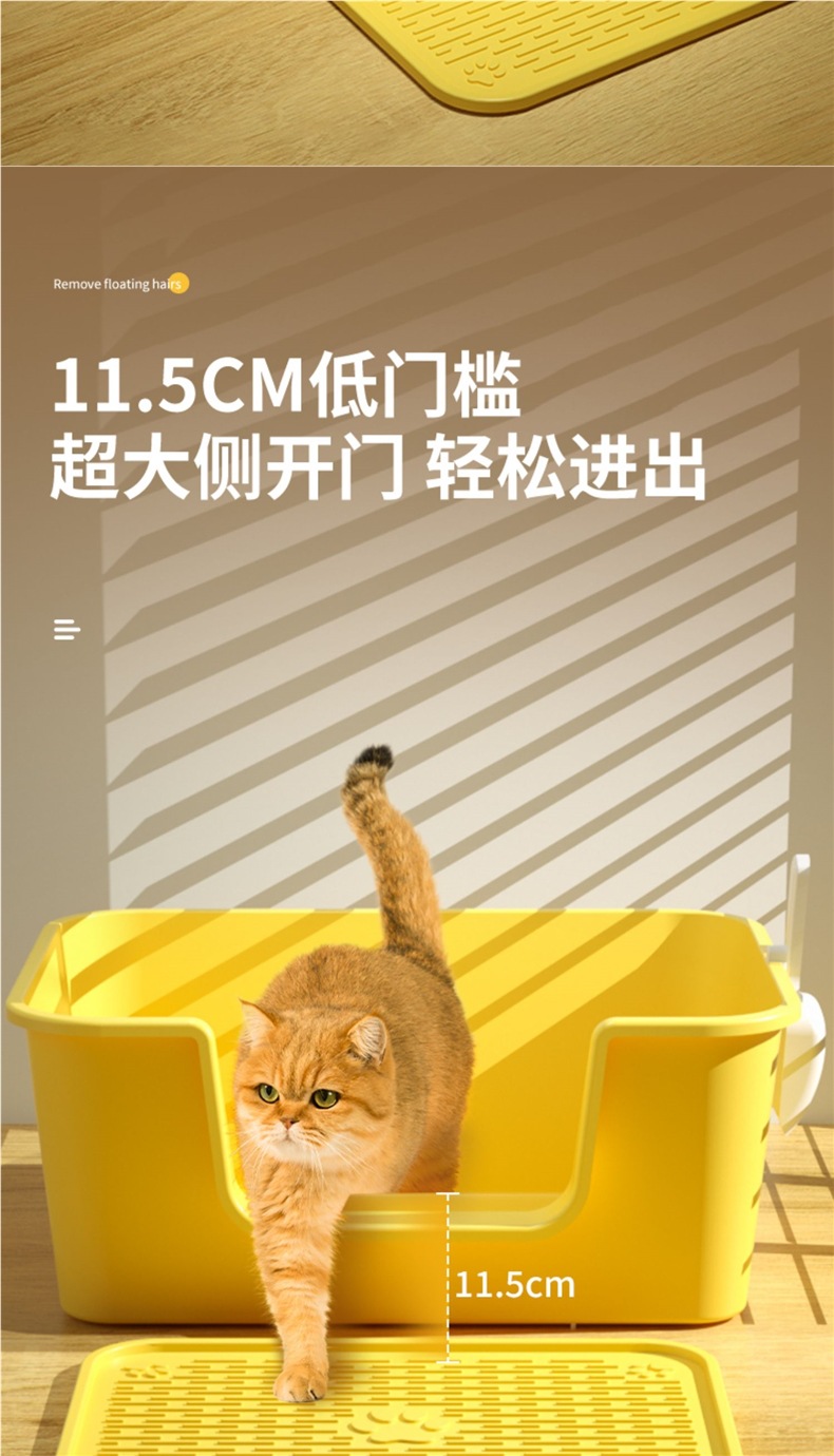 짧은 다리의 고양이와 새끼 고양이를 위한 고양이 화장실, 반밀폐형 냄새 차단 및 물 튀김 방지 고양이 화장실, 고양이 용품스토어 가기