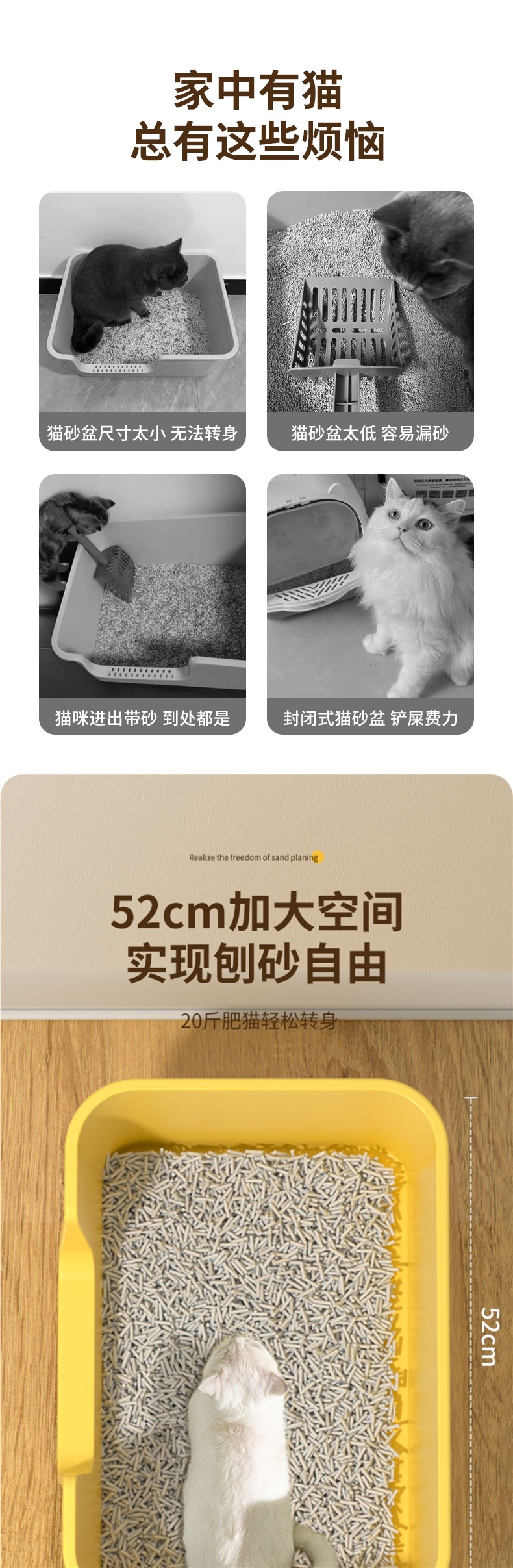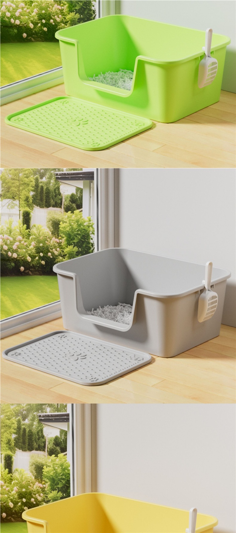 짧은 다리의 고양이와 새끼 고양이를 위한 고양이 화장실, 반밀폐형 냄새 차단 및 물 튀김 방지 고양이 화장실, 고양이 용품