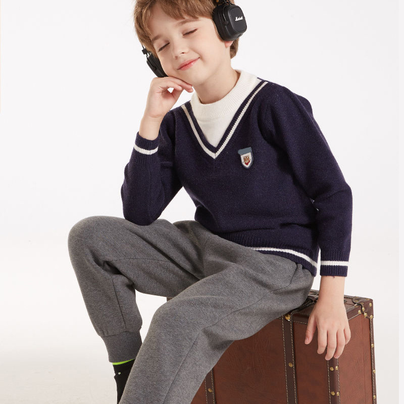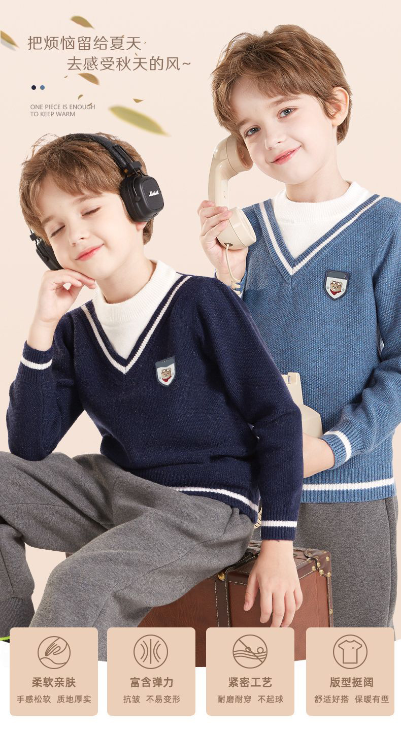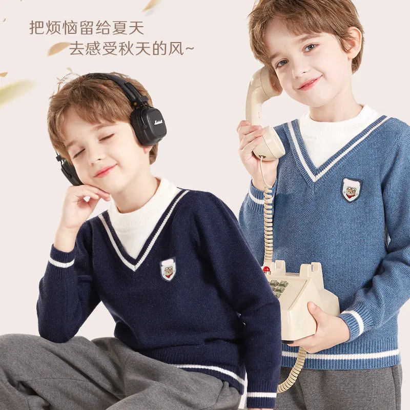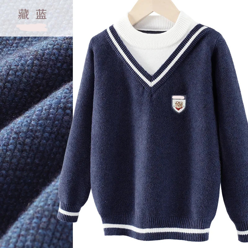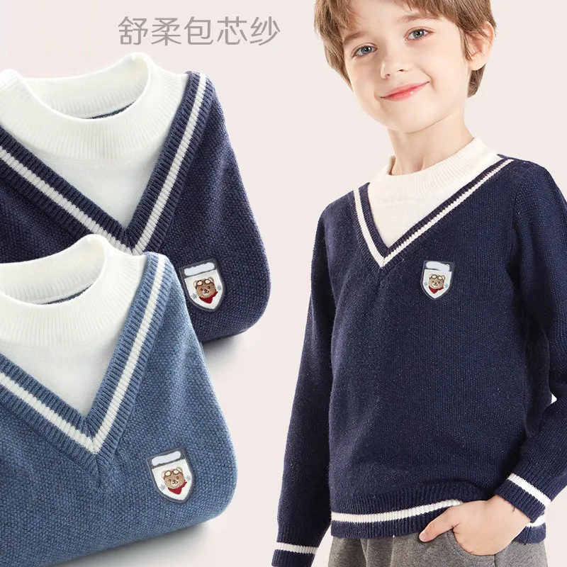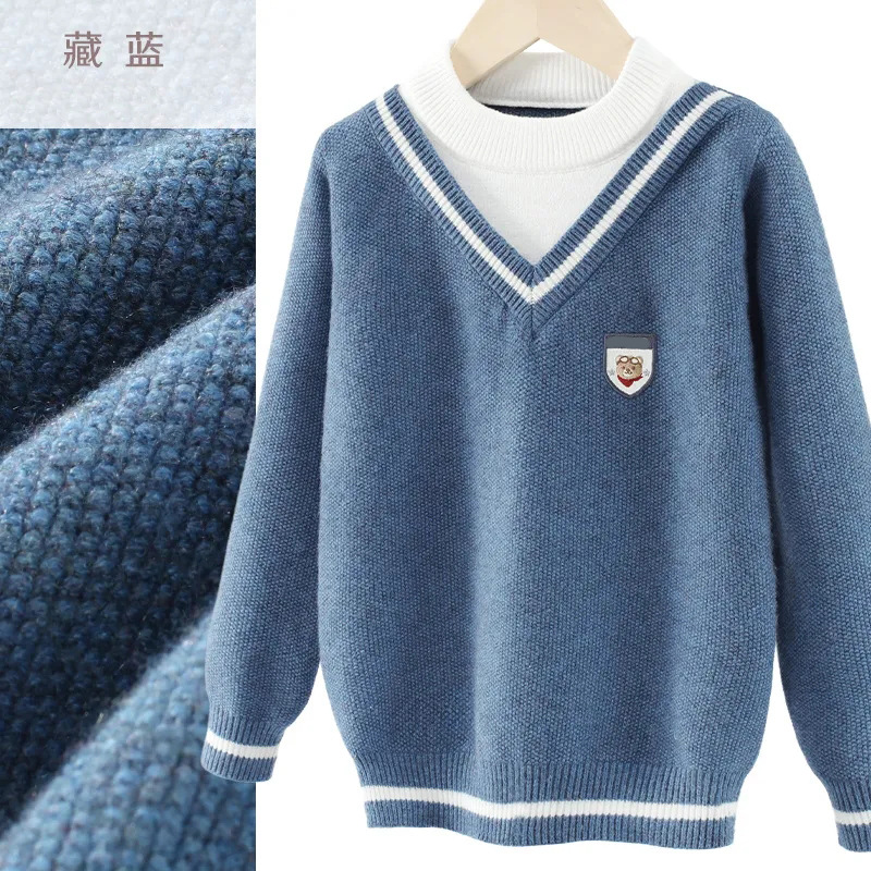 소년 스웨터 2025 가을, 겨울 새로운 어린이 니트 바닥 셔츠 소년 두꺼운 풀오버 중대형 어린이 따뜻한 스웨터
