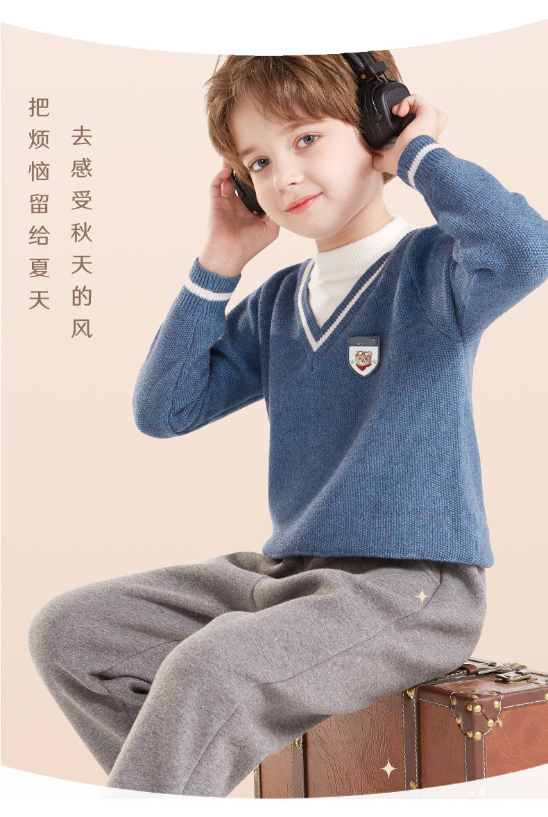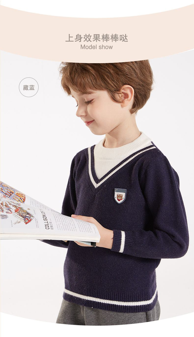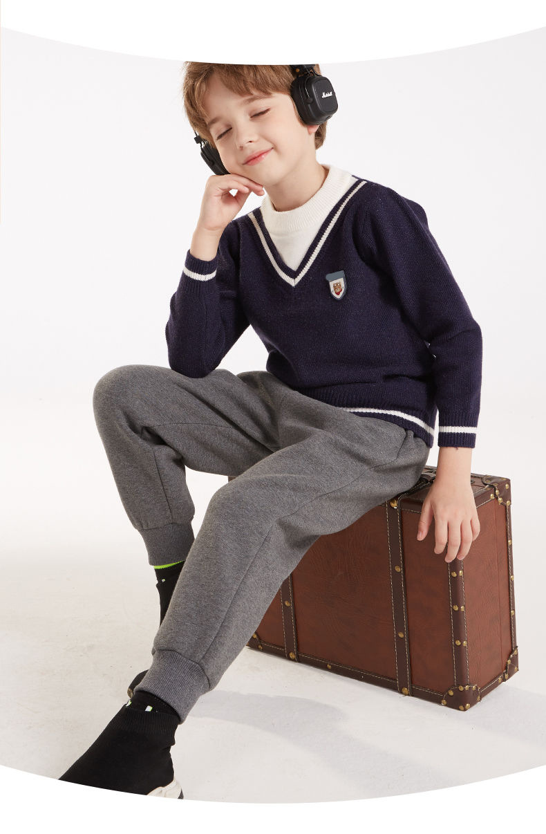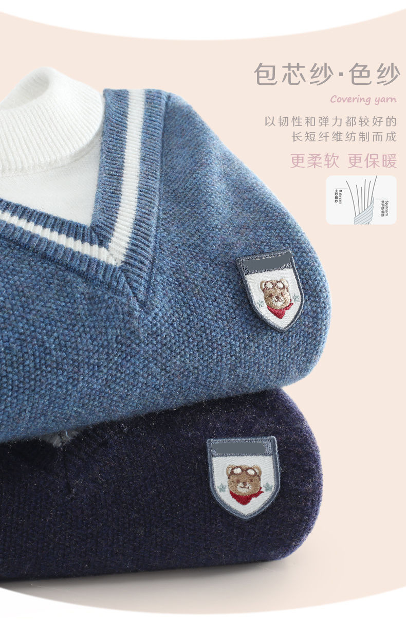 소년 스웨터 2025 가을, 겨울 새로운 어린이 니트 바닥 셔츠 소년 두꺼운 풀오버 중대형 어린이 따뜻한 스웨터