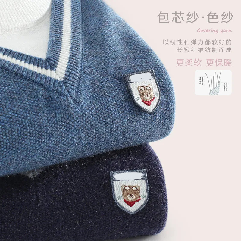 소년 스웨터 2025 가을, 겨울 새로운 어린이 니트 바닥 셔츠 소년 두꺼운 풀오버 중대형 어린이 따뜻한 스웨터스토어 가기