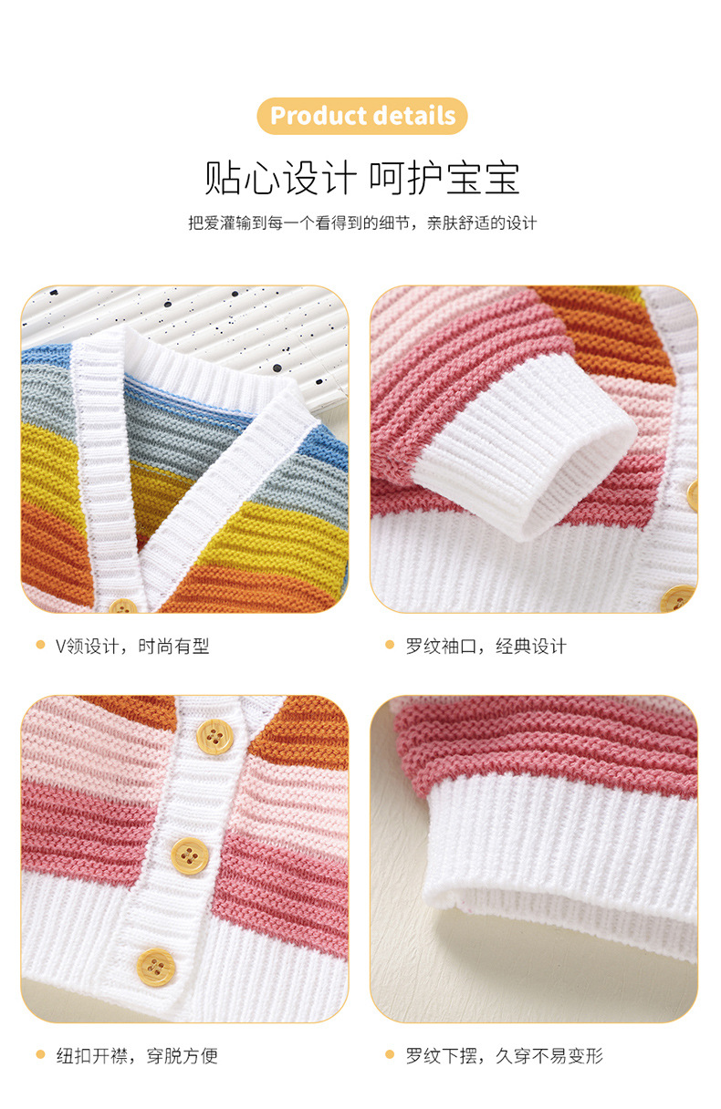 Ins 뜨거운 판매 가을, 겨울 새로운 유아 니트 무지개 줄무늬 짧은 코트 아기 소녀 따뜻한 방풍 카디건스토어 가기