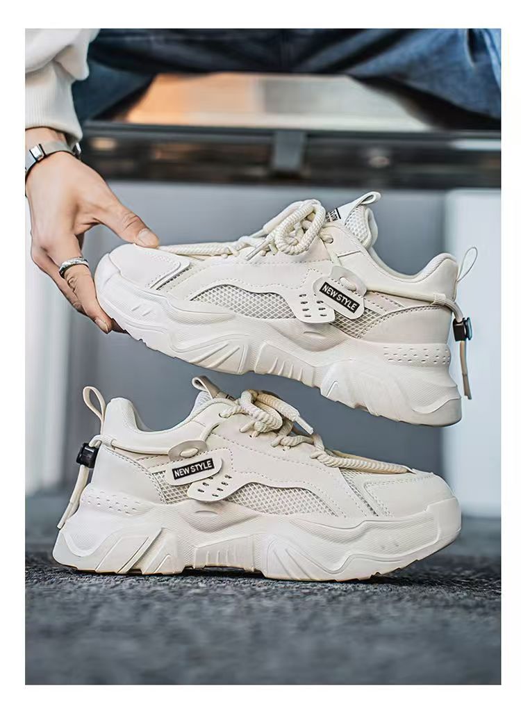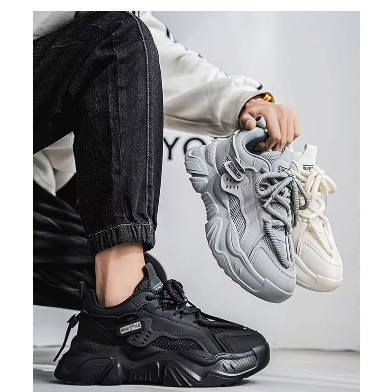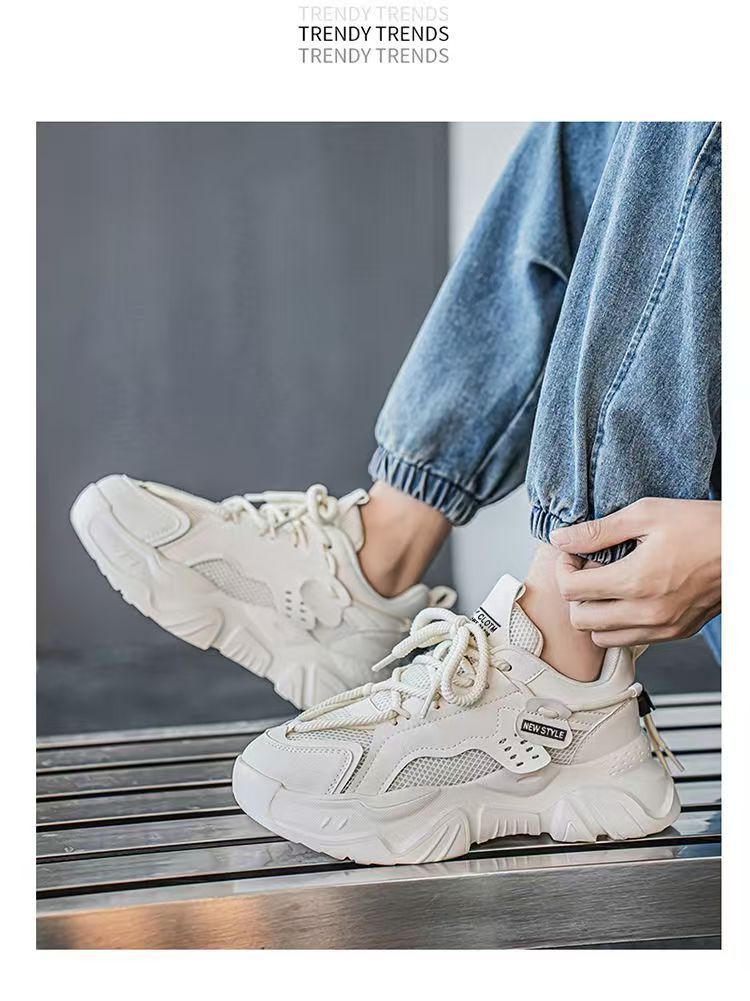 남성 신발 2025 새로운 봄, 여름 유행 남성 두꺼운 밑창 스포츠 인기 메쉬 통기성 캐주얼 아빠 남성용 유행 신발스토어 가기